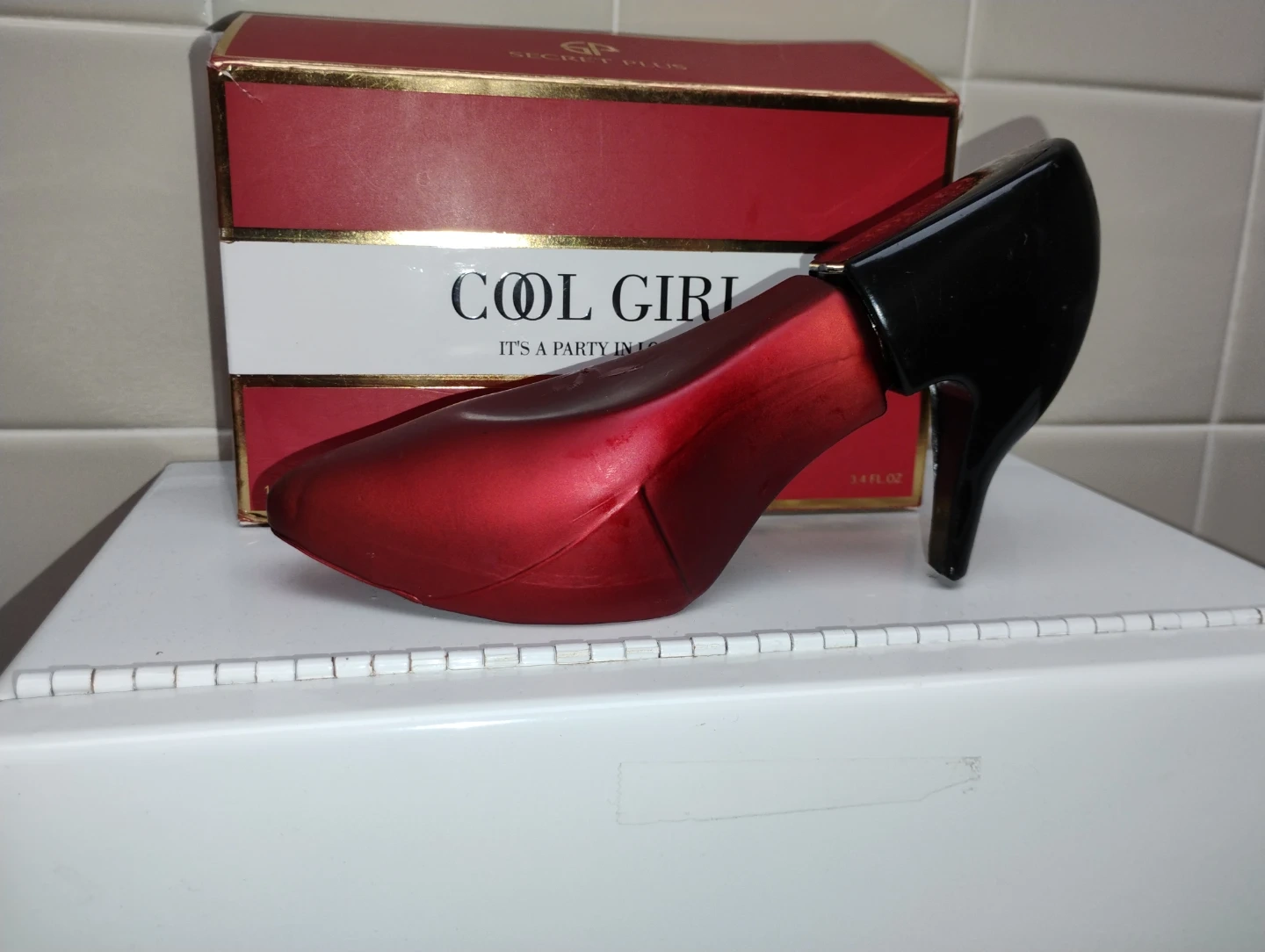 Secret Plus Cool Girl Eau De Toilette in a unique high heel bottle. Comes with original packaging. Fragrance is 100ml / 3.4 FL OZ.