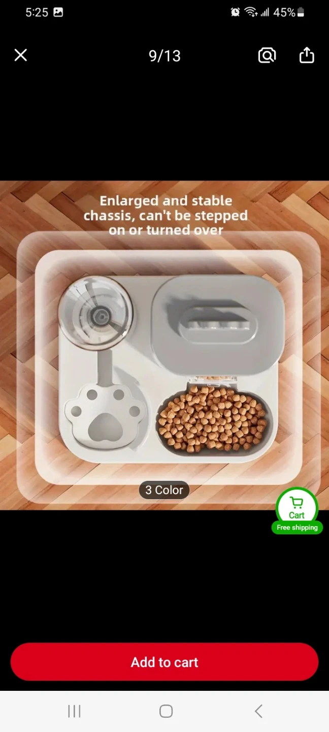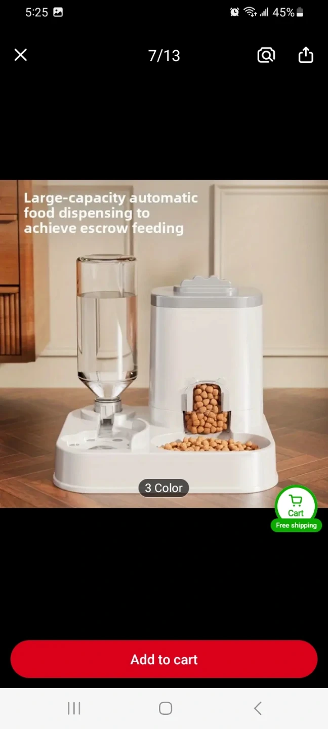 This automatic pet feeder features a large capacity for dry food storage. It also includes a good size capacity water bottle. The base is enlarged and stable, designed not to be stepped on or turned over. I wish it came in a larger size, my puppy out grew it. Otherwise I would still keep it, it's awesome! Karrot suggests $15 - $20