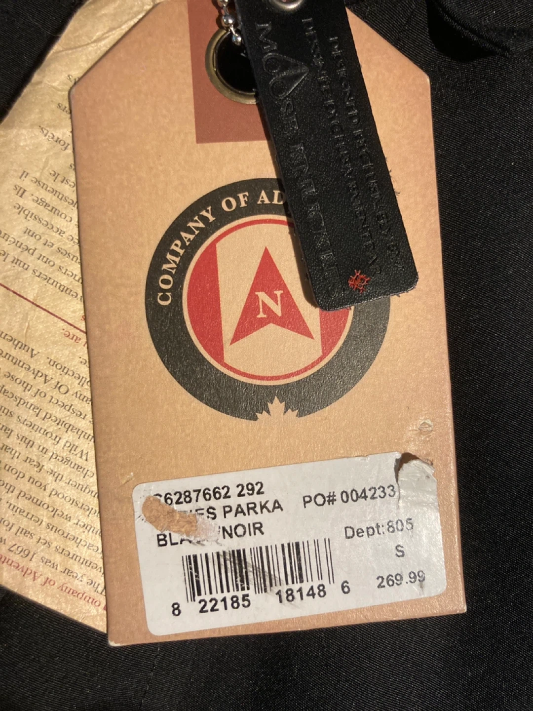 Women's small black parka by Moose Knuckles for Hudson's Bay Company. It's 80% down and 20% feather fill, water and wind resistant. Features a removable hood with genuine fur trim and rib-knit storm cuffs. Brand new with tags. Originally bought for $270.