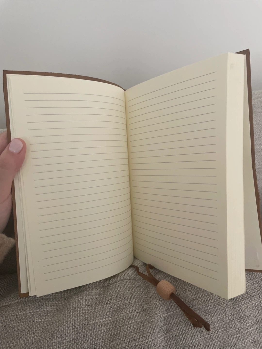 It features lined pages and a secure leather strap closure