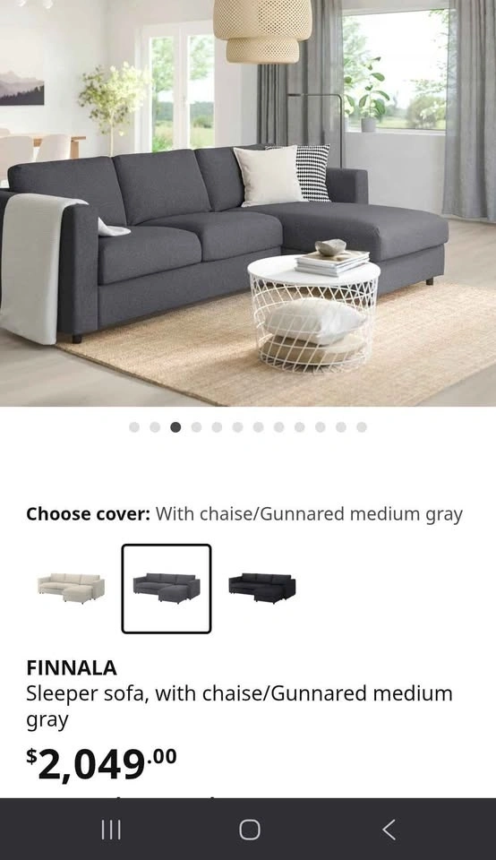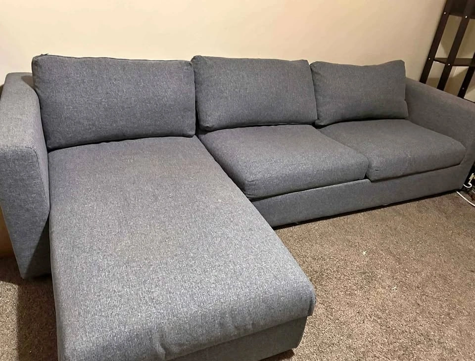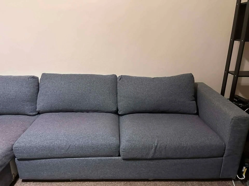 Sleeper sectional sofa with chaise in Gunnared medium gray fabric. Clean and in good condition. Comfortable for everyday seating and very practical for apartments or guest use. Features a pull-out sleeper bed for overnight guests, a reversible chaise that can be placed on either side, and built-in storage under the chaise for blankets or pillows. The modular design offers sturdy, supportive seating with a clean modern look. Removable fabric covers make it easy to maintain and clean. Selling because I'm moving. Mattress and cushions included. Pickup only. Heavy item – please bring help. Cash or Zelle accepted. Smoke-free / pet-free home.