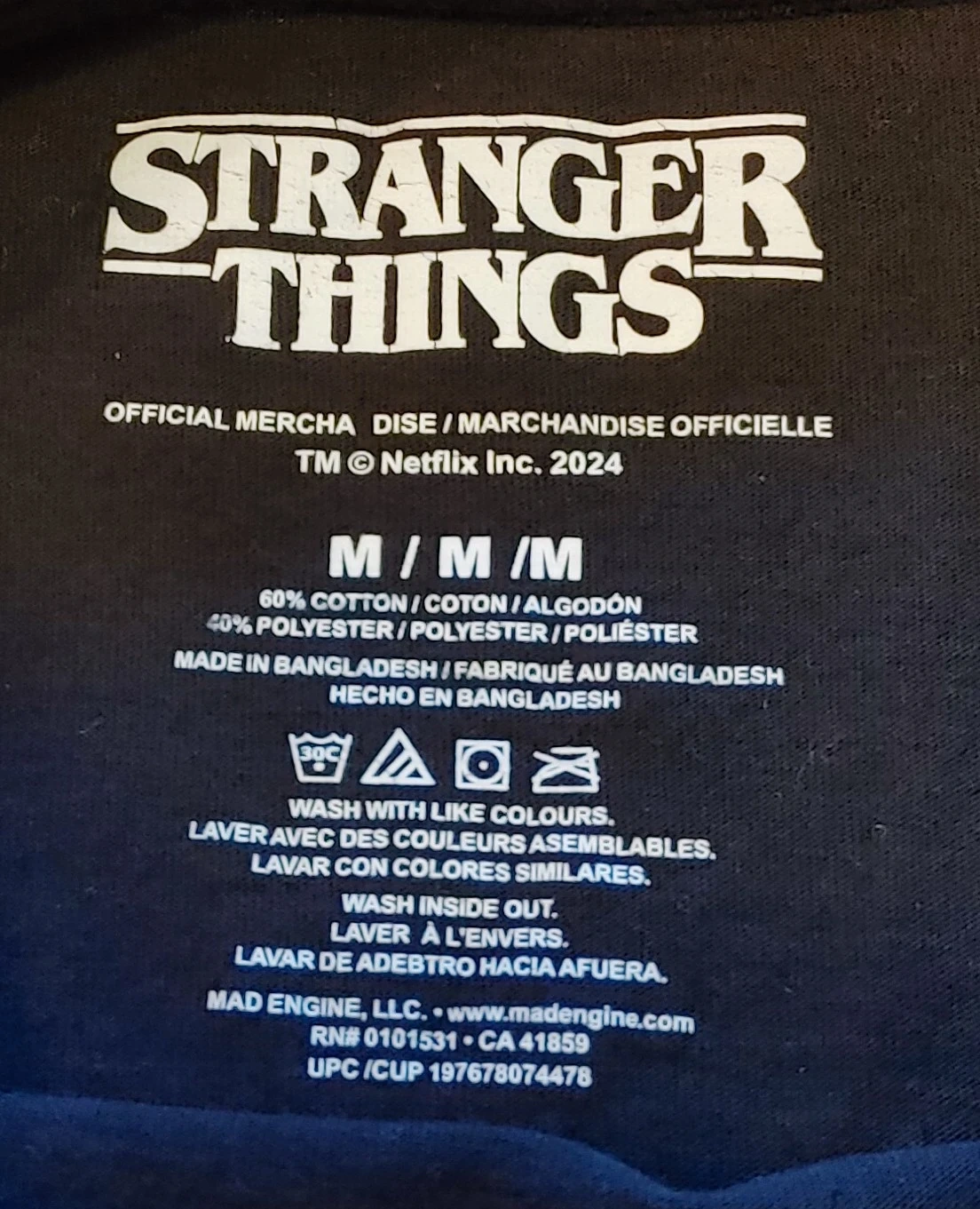 Mens black size medium Stranger Things Hellfire Club t shirt. Excellent condition. Graphic like new. No rips, stains or fraying. Smoke free home pick up Mt Brydges cash only.