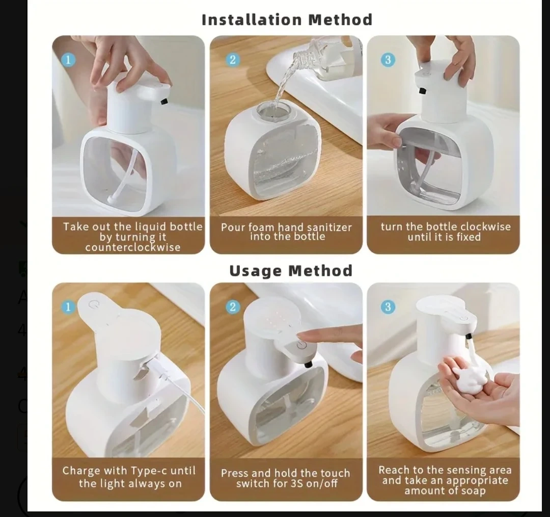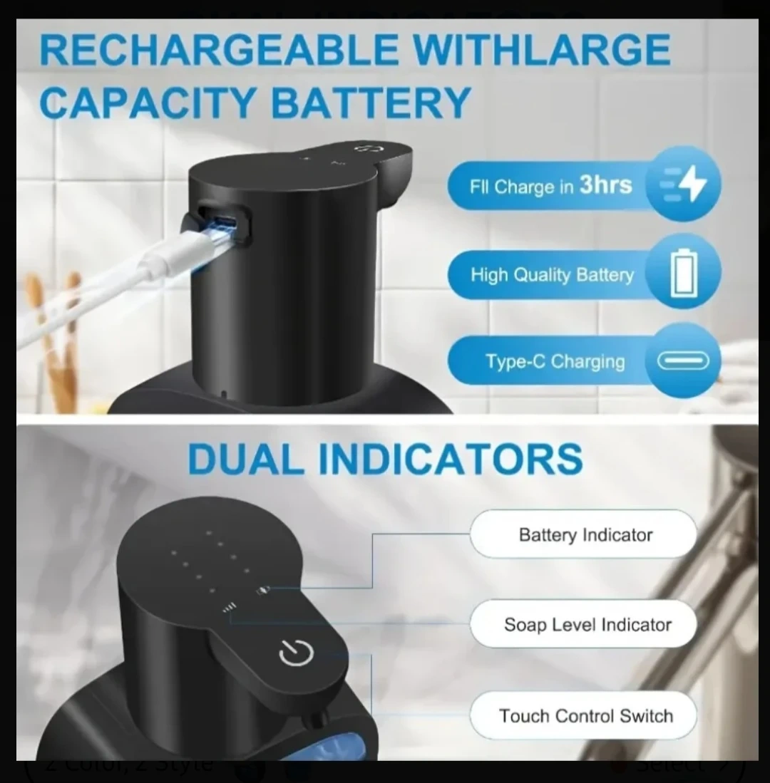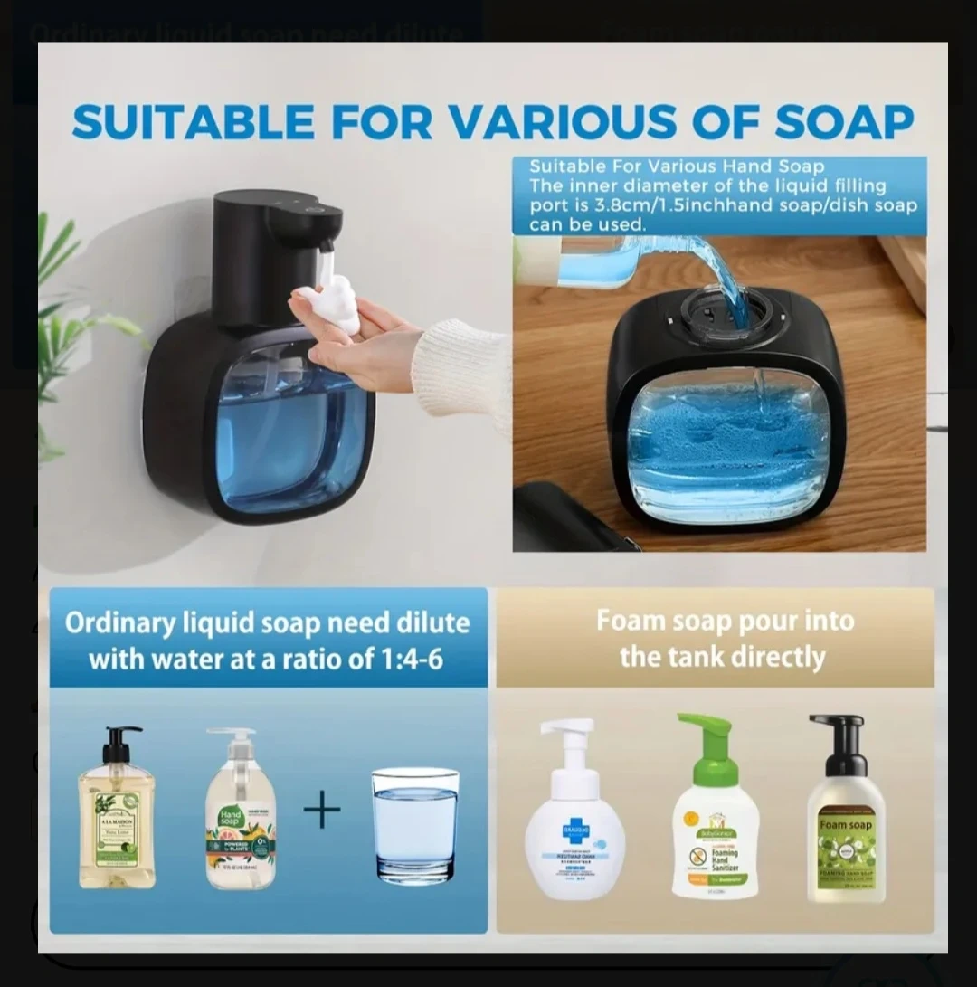 This automatic soap dispenser offers a touchless experience, helping to reject cross-infection. It's rechargeable via Type-C and includes 2 pieces of backing stickers for easy installation. Simply place your hand near the sensor to get foam soap.