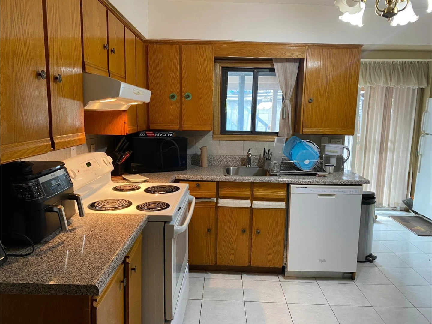 Solid wood bedroom set featuring a queen-size bed frame and a dresser with a mirror. The headboard includes storage and decorative elements. This set brings a classic look to any bedroom. Dressers drawers provide ample storage space. Area: Oackwood and Roger’s ( Keele and Roger’s)