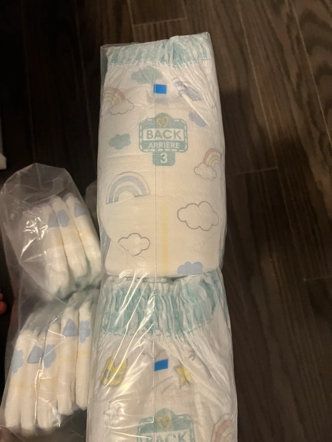 Two packs of size 3 diapers.