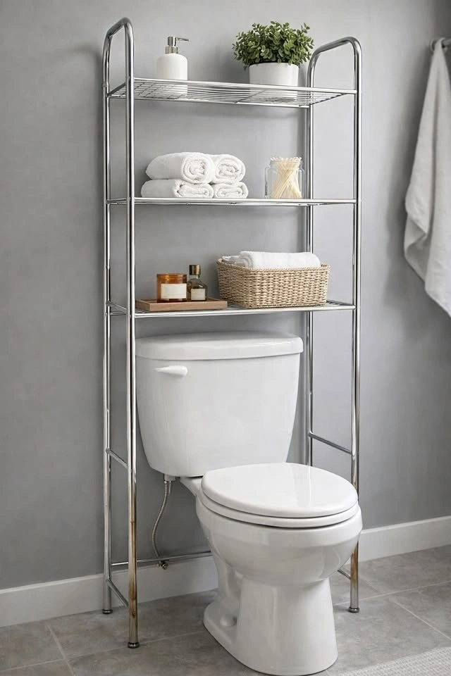 Over-The-Toilet Wire Storage Shelf – Space Saver