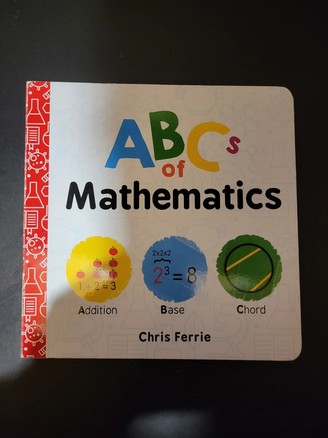 This is the ABC's of Mathematics board book by Chris Ferrie. It's designed to grow with your reader, starting from the basics. It covers three levels of learning, from beginner to beyond. A great way to introduce young minds to big ideas!