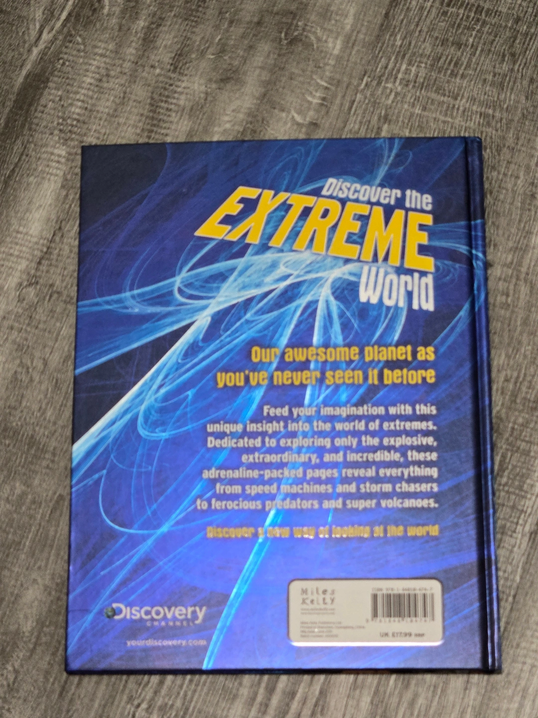 Selling a hardcover copy of "Discover the Extreme World" by Miles Kelly (copyright 2011).