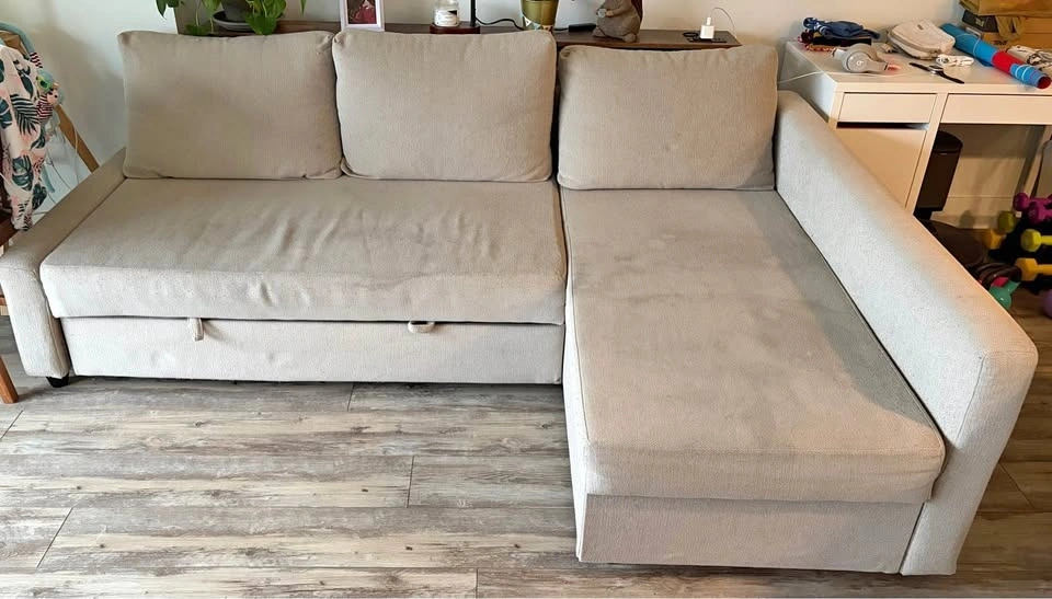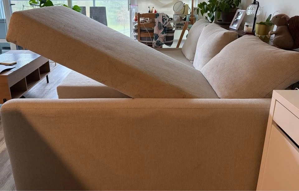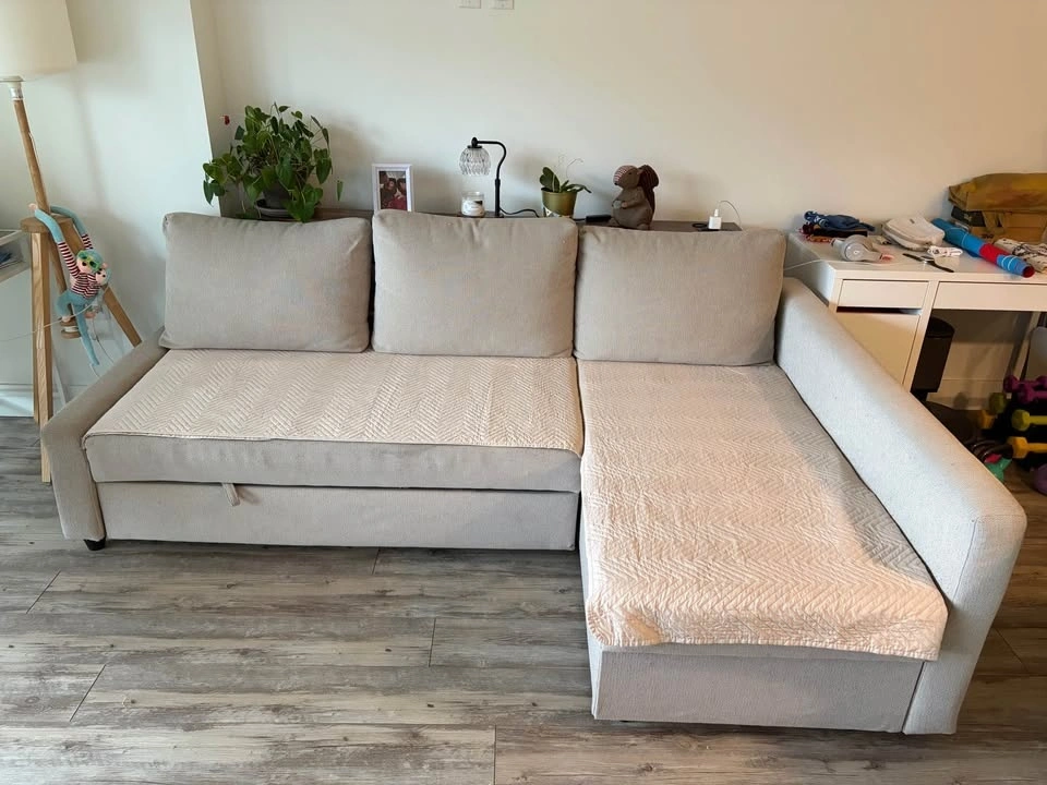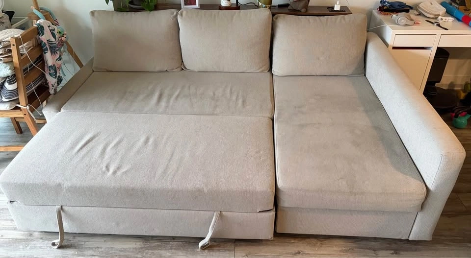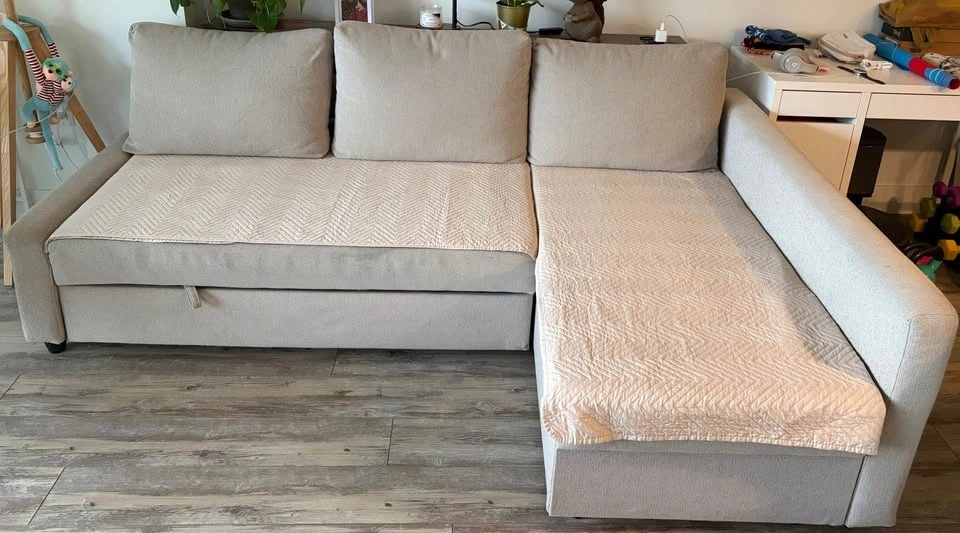 To pick up in North Vancouver. Selling because we are moving. From a no smoking household. Please see pictures for measurements. Sofa side lifts for storage. Can sell it with the new beige sofa covers if you'd like.