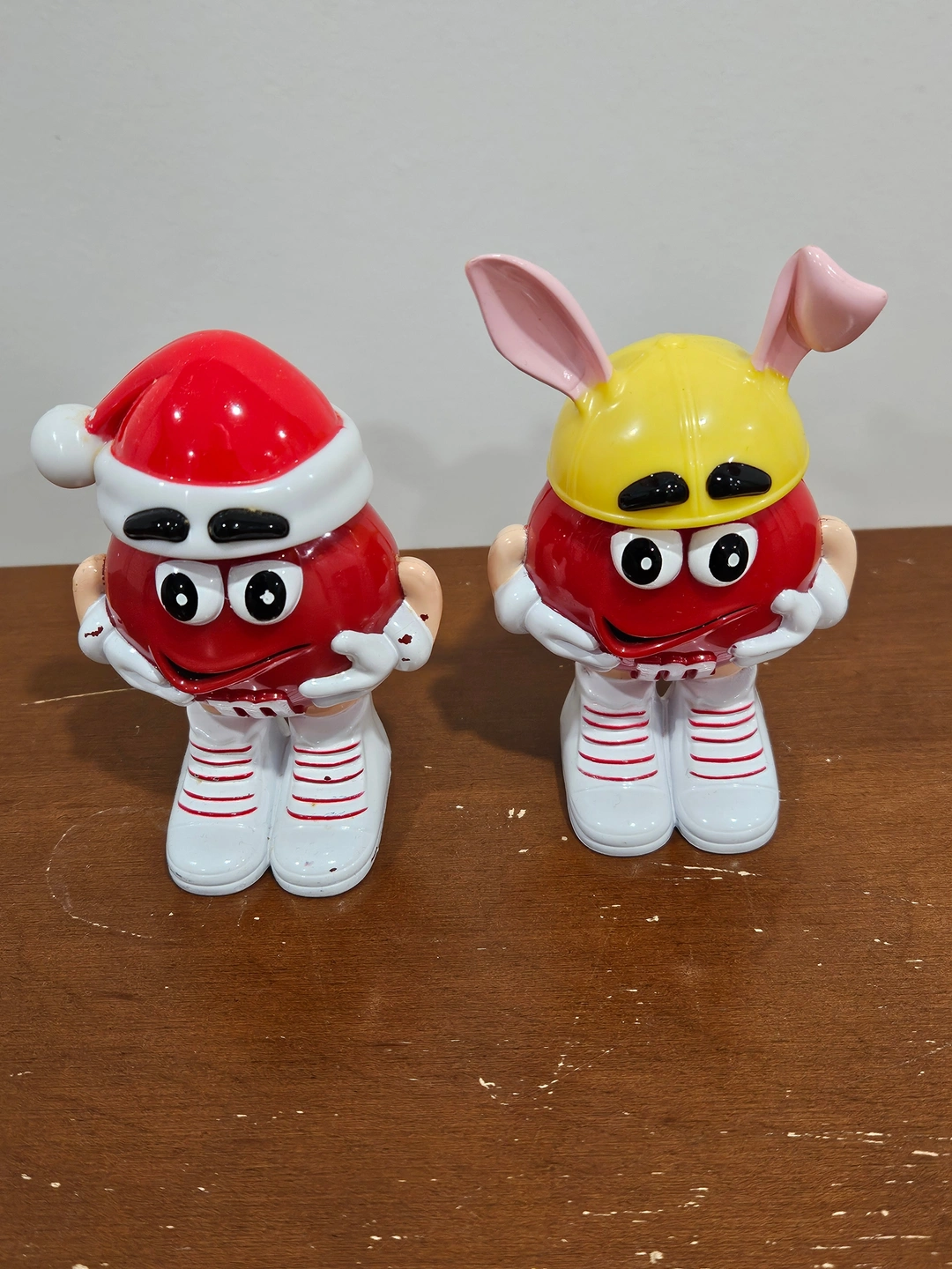 - M&M's MINI’s Collectible Easter Figure: Plastic, Red with White Sneakers, Removable Yellow Cap with Bunny Ears, 4 1/4” high