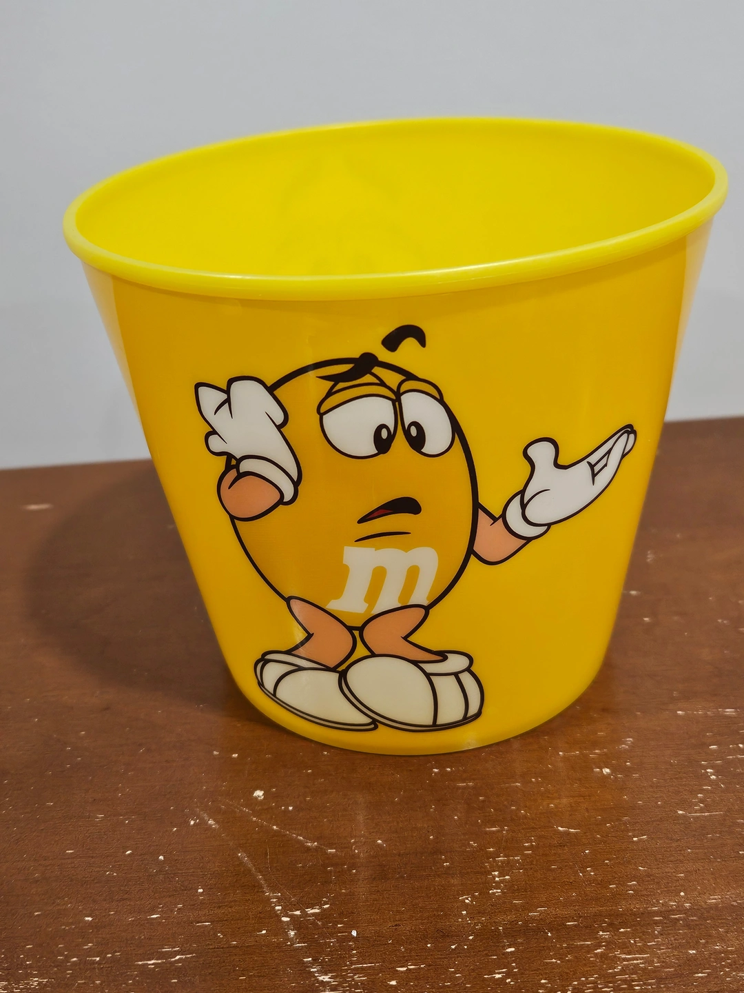- M&M's Small Yellow Bucket: 2016, Plastic 4 3/4” high x 5 1/2” wide, 1200mL
