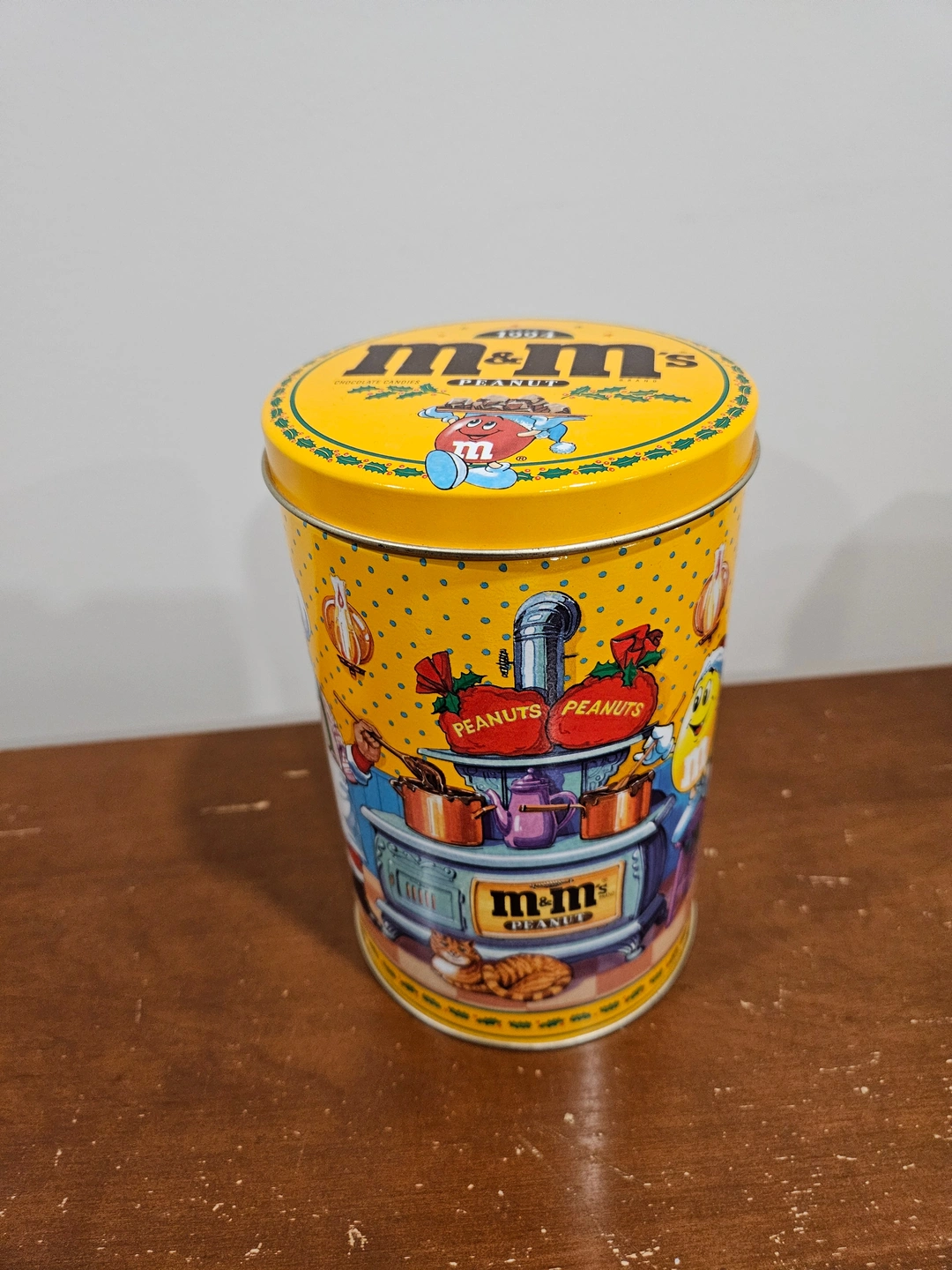 - M&M’s Collectible Christmas Tin 1: 1994, Peanut Yellow Cylinder, Santa's Kitchen