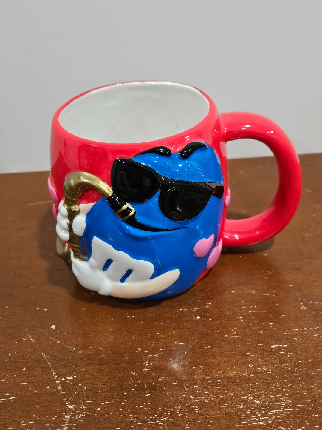 - M&M's Collectible Valentines Ceramic 3D Mug: 2003, Blue M&M, Sunglasses & Saxophone with Hearts, by Galerie