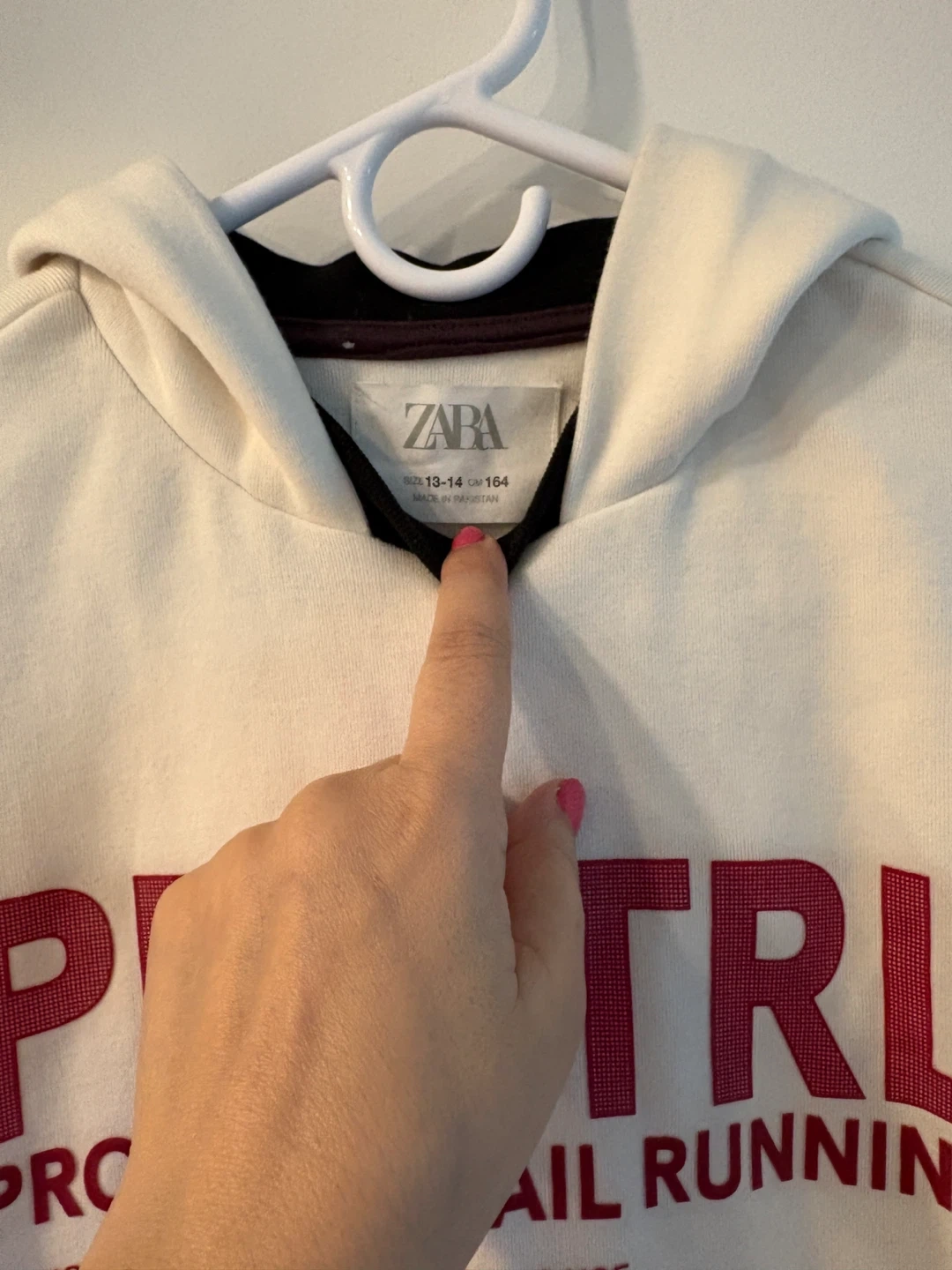 Boy’s ZARA hoodie size 13-14Y or 164cm. The material feels like a soft cotton blend.