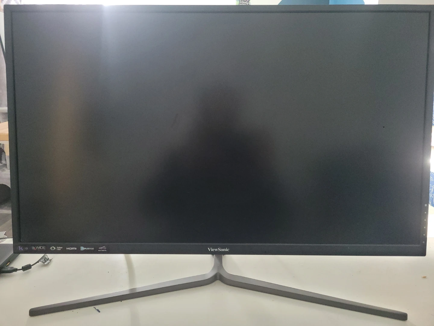 This is a ViewSonic monitor. It has a wide screen display. It supports HDMI and Display input.