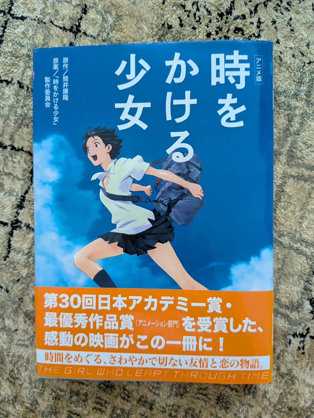 This is the anime version book for "The Girl Who Leapt Through Time." It won the 30th Japan Academy Prize for Excellent Animation of the Year. It tells a story of time travel, friendship, and love.