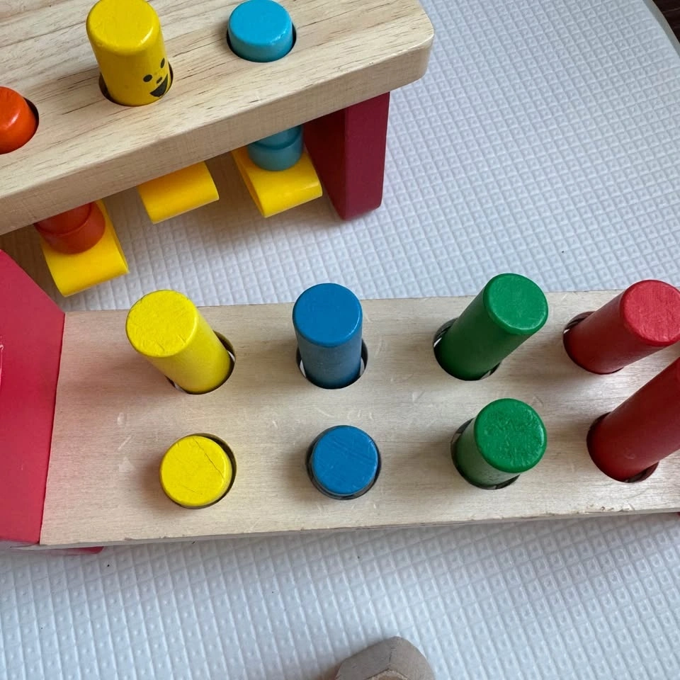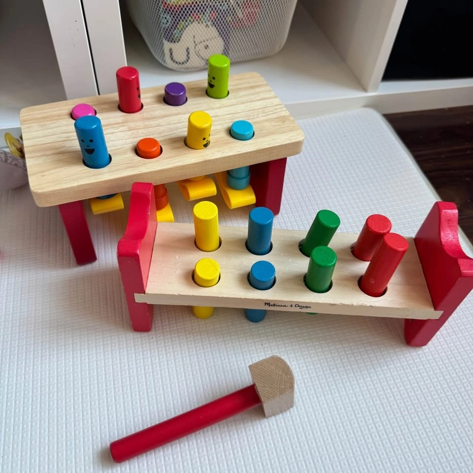 Two Melissa & Doug wooden pound benches with mallet. All pegs included. Shows cosmetic wear from play but fully functional and sturdy. Great classic toy for toddlers. Selling as a set. Pick up in Richmond Hill.