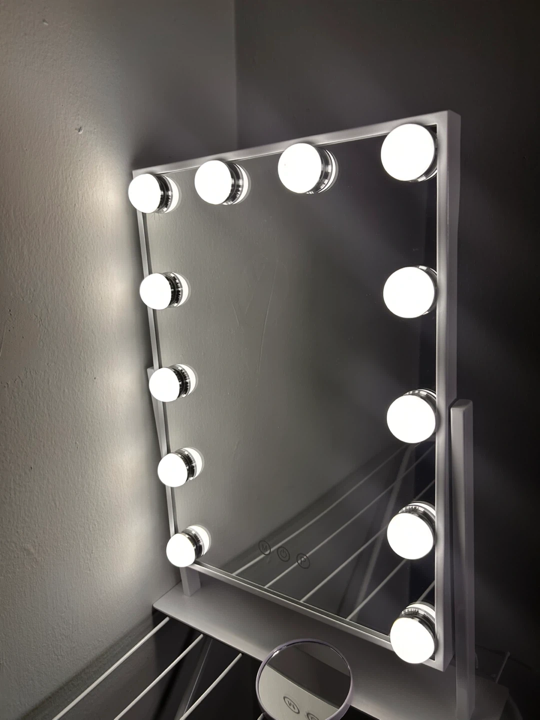 This COOLJEEN Hollywood Makeup Mirror comes with 12 bulbs for bright, even lighting. It includes a free compact magnifier. Open box
