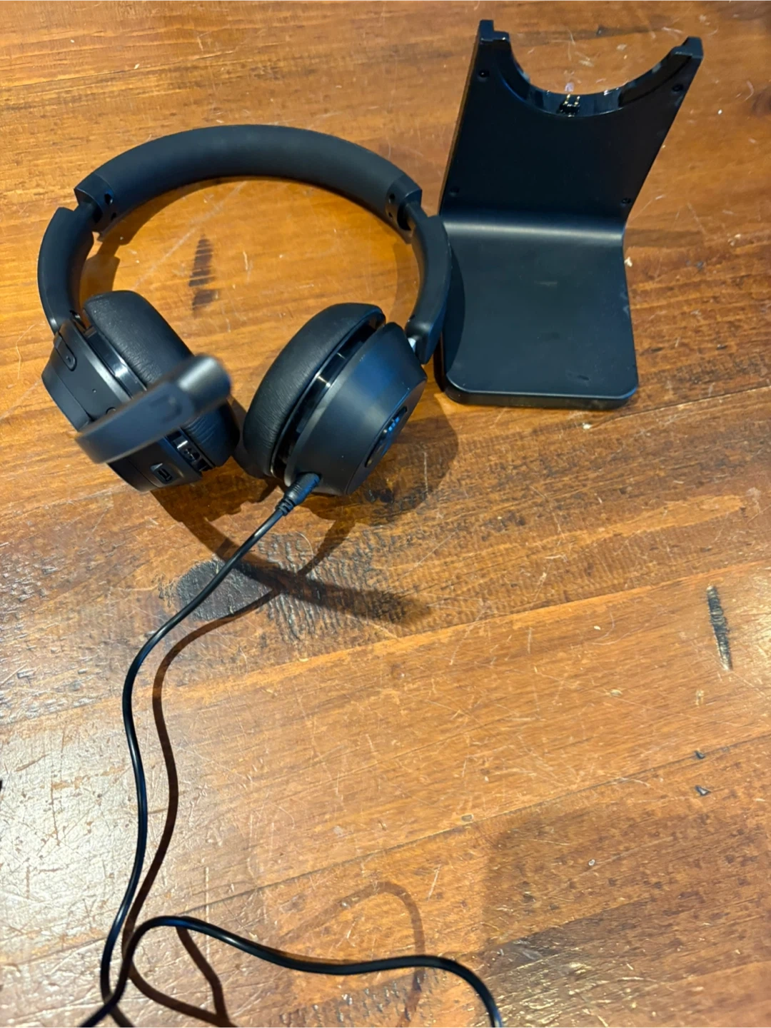 These are Soothielec KH53 headphones. They come with a charging stand. Perfect for calls or listening to music! Not for gaming .