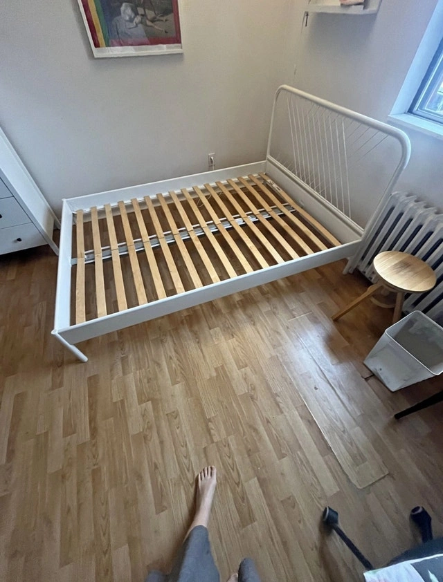 Clean metal double/full size bed. Nothing wrong with it. Currently disassembled for easy pickup. Mattress available for an extra $100. Smoke-free, bug-free, pet-free home. Self-pickup at Markham area (Kennedy & Steeles).