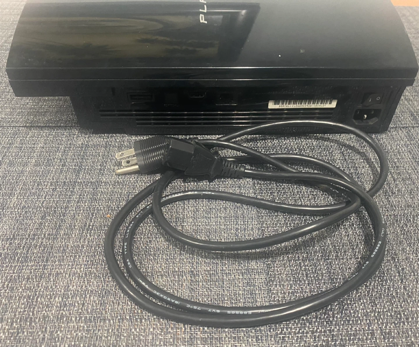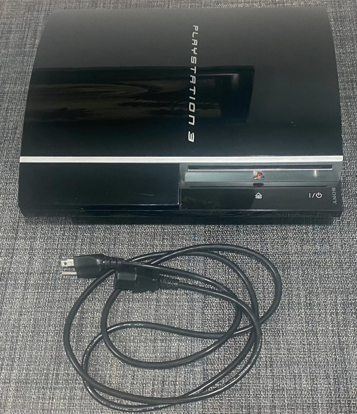 This is a black Sony PlayStation 3 gaming console the fat model. It comes with a power cord. The console powers on, takes and ejects discs, does not have the yellow/red light of death. It does not want to display anything on the T.V however. I suck at repairs and don’t have the time or patience to do it. If it interests you it’s probably worth taking a stab at.