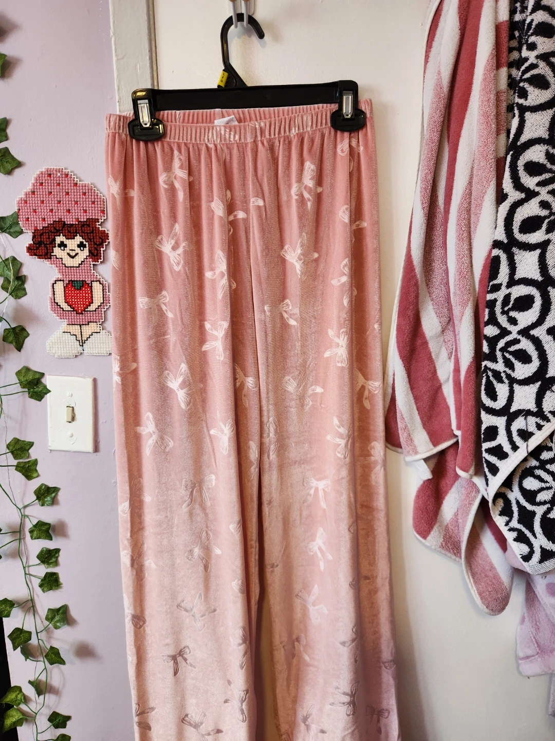 Light Pink Velvet Bow Pajama Set - Size Small🏆