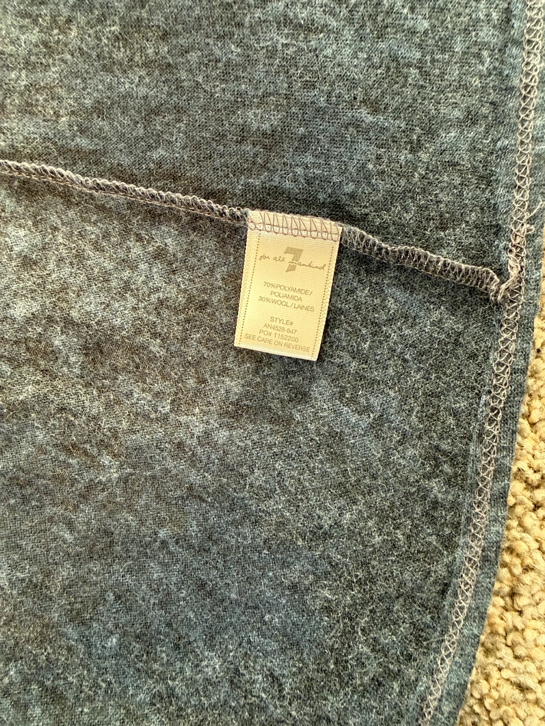 Measurements: 17 inches pit to pit, 31 inches top of shoulder to bottom