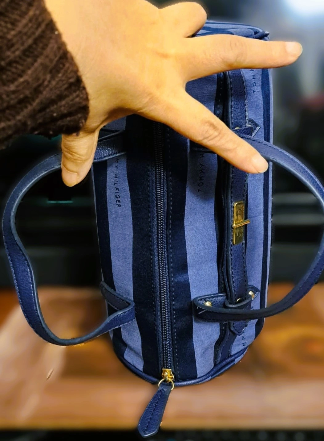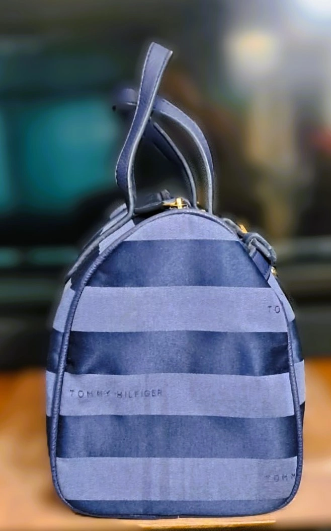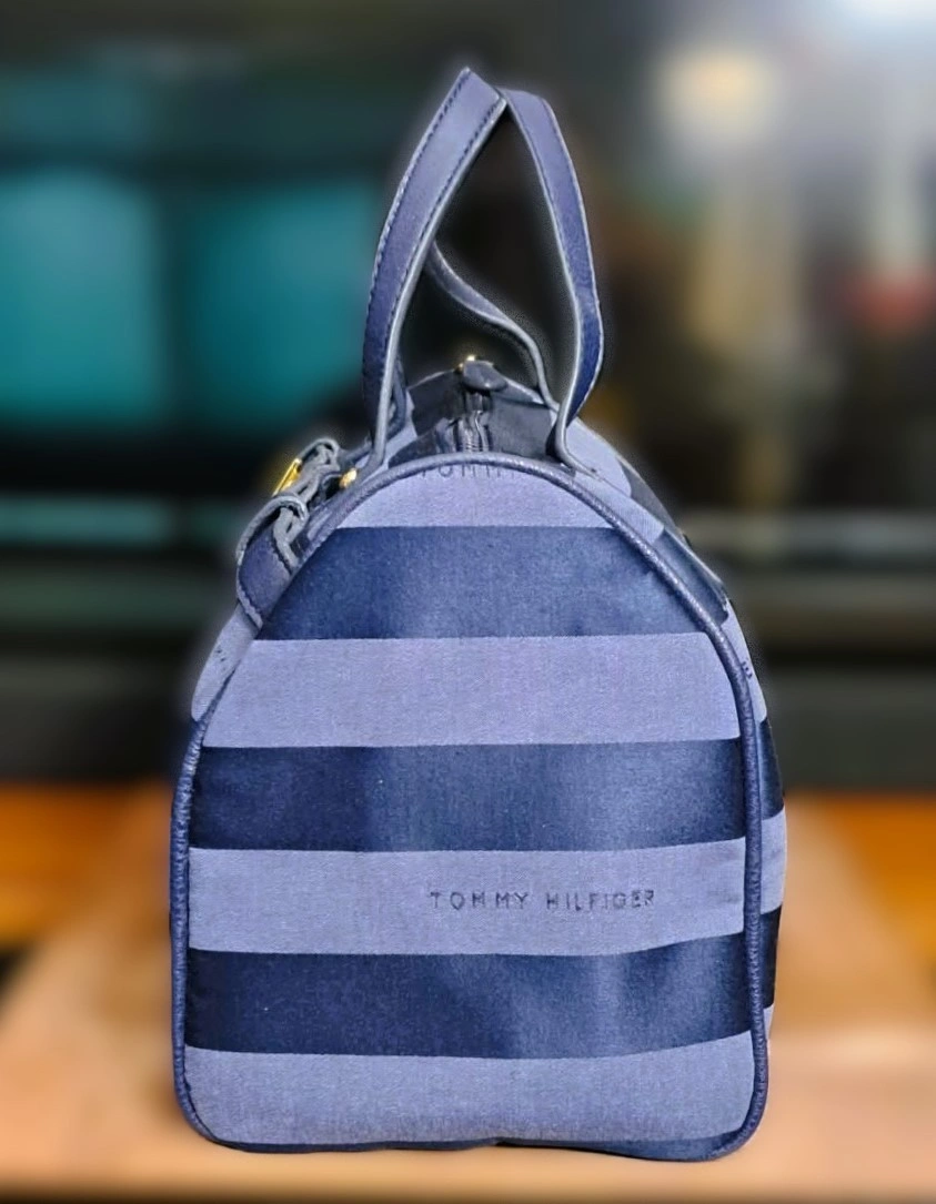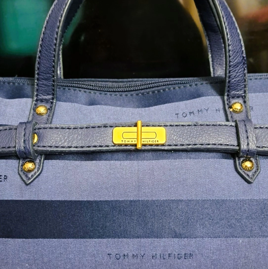 Tommy Hilfiger Blue Striped Canvas Satchel Handbag