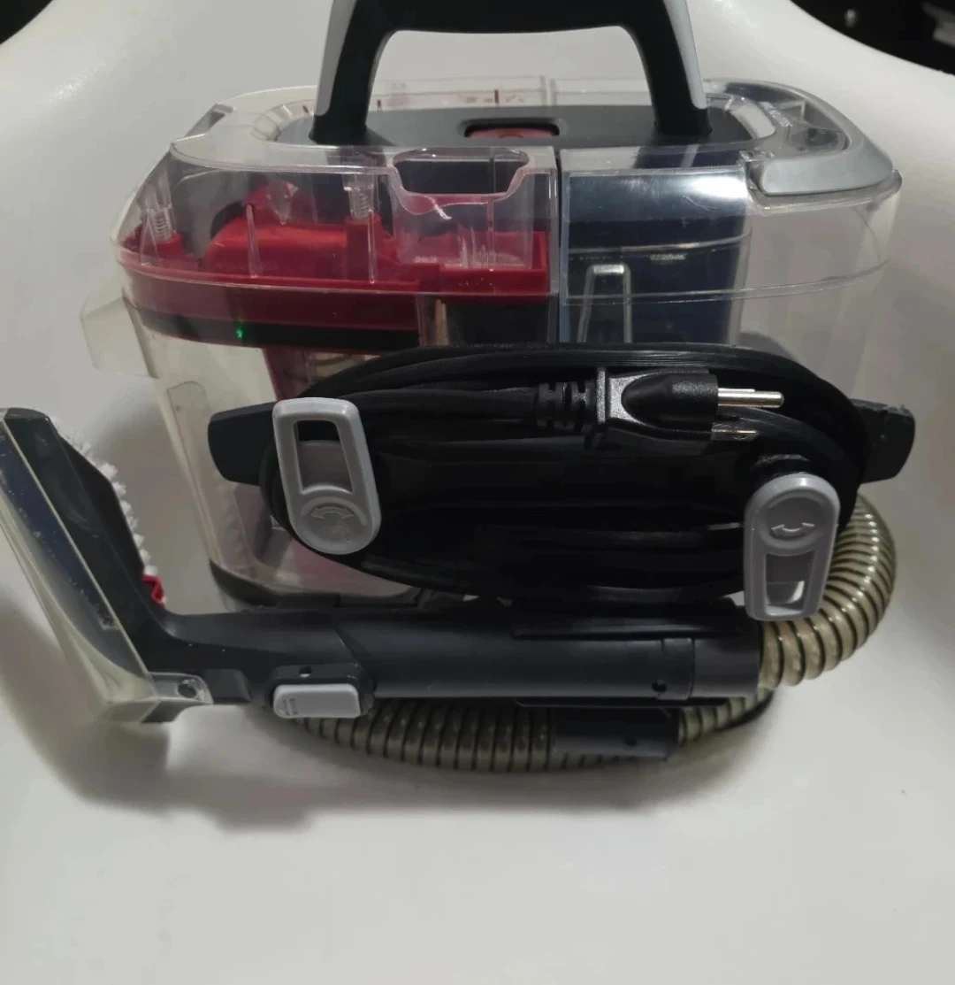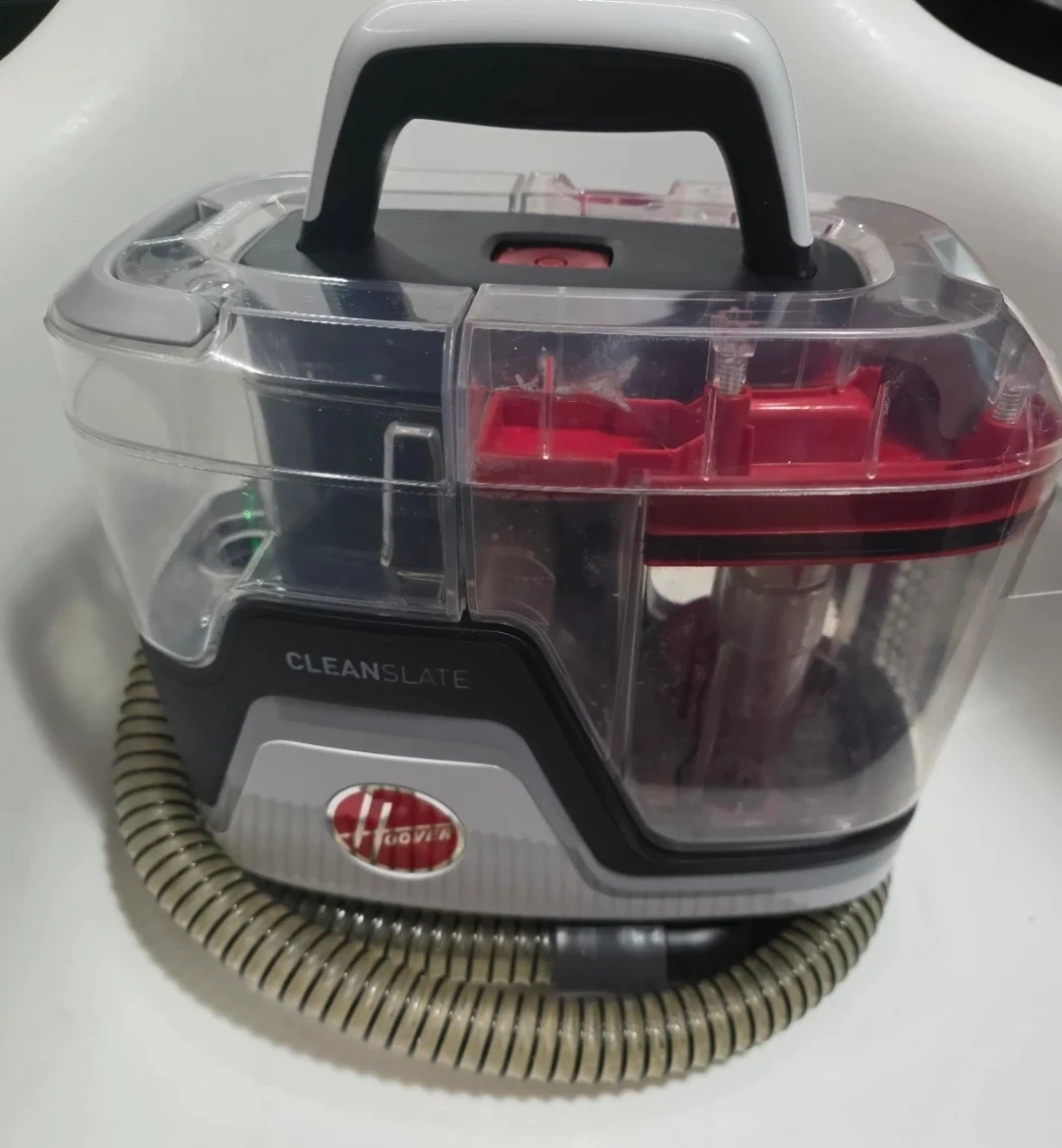It's clean and ready for a new owner. This Hoover CleanSlate portable cleaner is excellent for tackling tough spots and stains on carpets and upholstery. It features powerful suction and a convenient hose-and-nozzle attachment for targeted cleaning. CleanSlate technology helps lift and remove messes effectively.