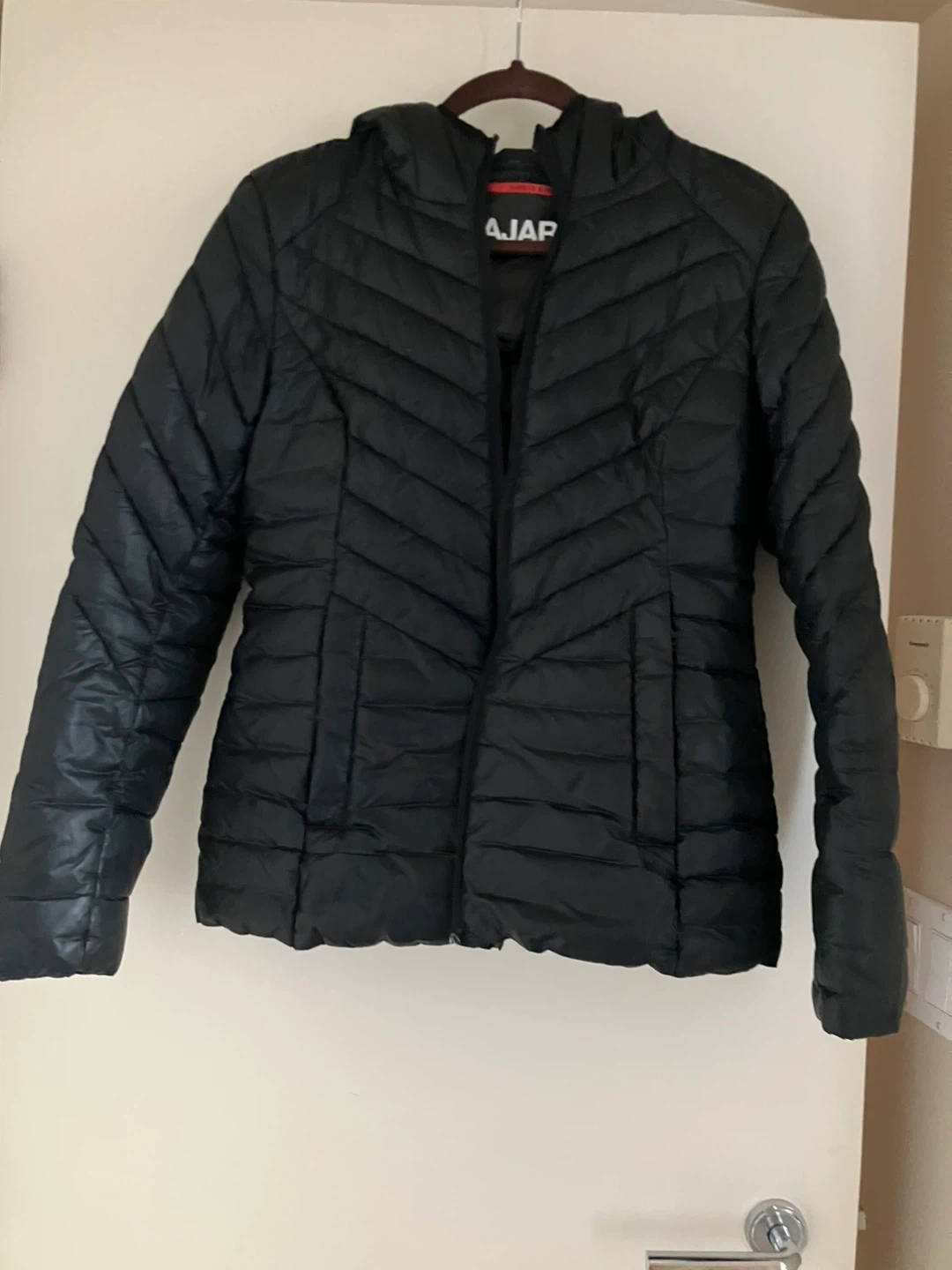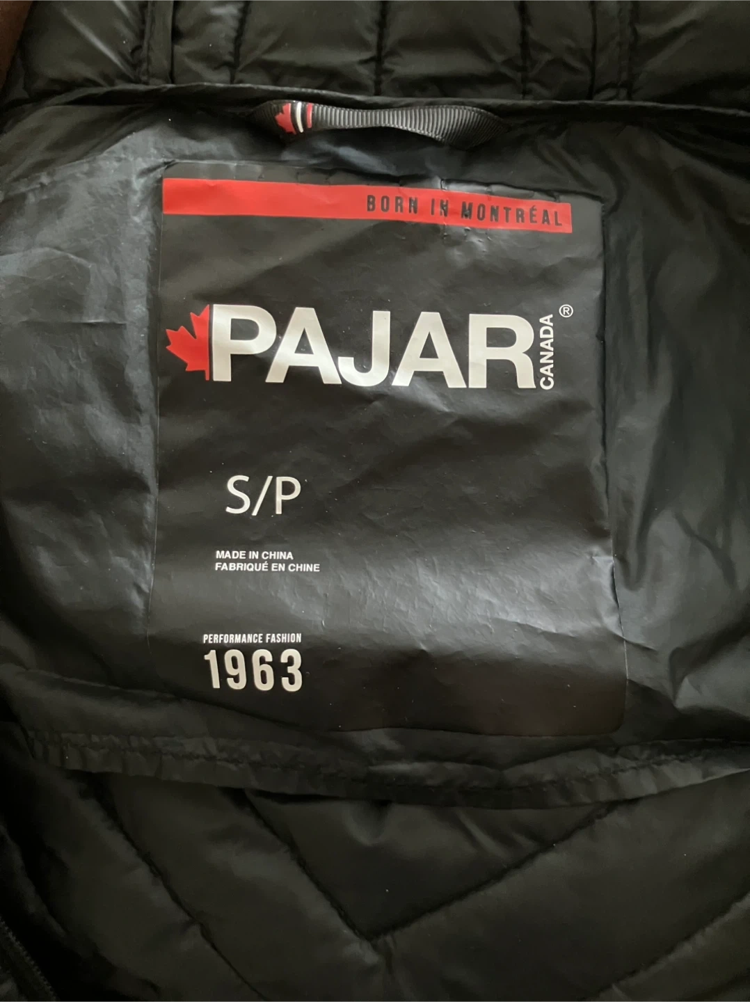 Black puffer jacket by Pajar Canada. Made with 100% polyester for the shell, lining, and fill. It's a size S/P. Perfect for cooler weather! Needs a new zipper.