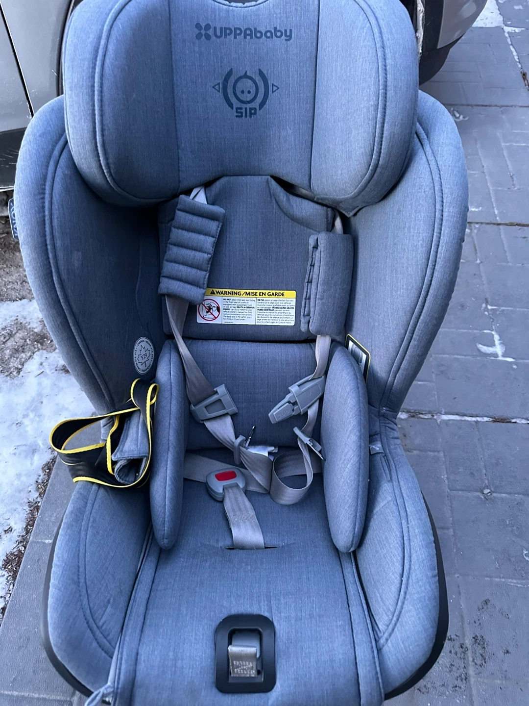 This UPPAbaby convertible car seat is made with a durable fabric. It's designed for rear-facing and forward-facing use. The seat includes SIP (Side Impact Protection) for added safety. This car seat is suitable for infants and toddlers.