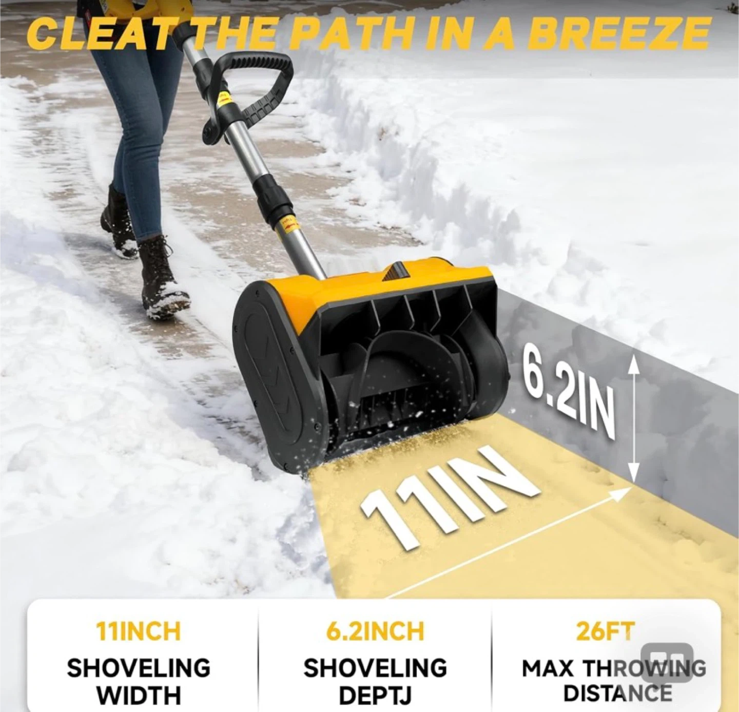Cordless Snow Shovel Compatible with Dewalt 20V Max Battery, 11" Electric Snow Blower for Driveway Max 27FT Throw Distance, 6.2" Clear Depth Snow Thrower with Front Handle for Patio Deck(Bare Tool)