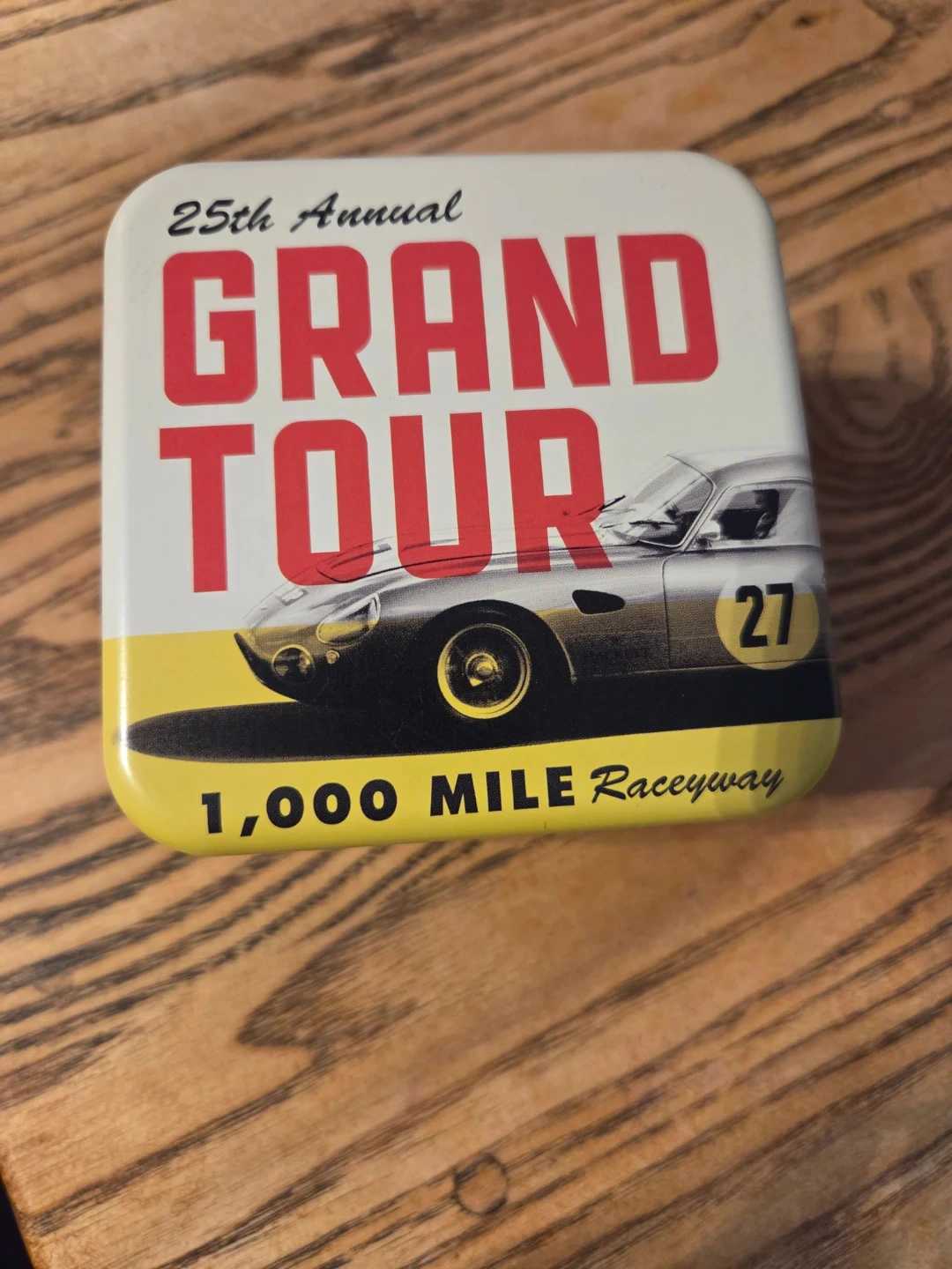 This is a Fossil watch with a black face and a brown leather strap. It comes in its original tin packaging. The watch has a classic design with clean hour markers and a pop of orange on the second hand.