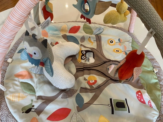 Get your little one moving and exploring with this gently used Skip Hop activity gym, featuring a charming tree design and adorable hanging toys. It's in good condition and ready for its next adventure! This interactive gym helps develop motor skills with its engaging toys and textures. Features: Soft mat with engaging flaps and textures, multiple hanging toys, support pillow included, removable mirror for easy machine washing. Condition: Used - Good. Payment: Cashless payment, Cash accepted.