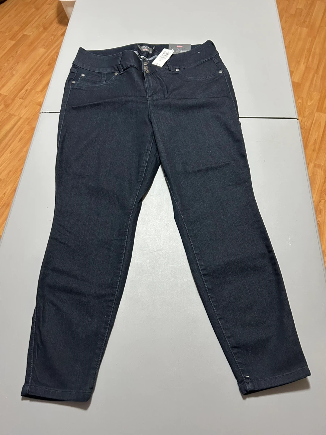 Brand New with tags. These Torrid jeggings come in a dark wash denim. They feature a high-rise, 3-button smoothing waistband, and a super skinny leg opening. The fabric is super stretch for comfort. These are great for everyday wear!