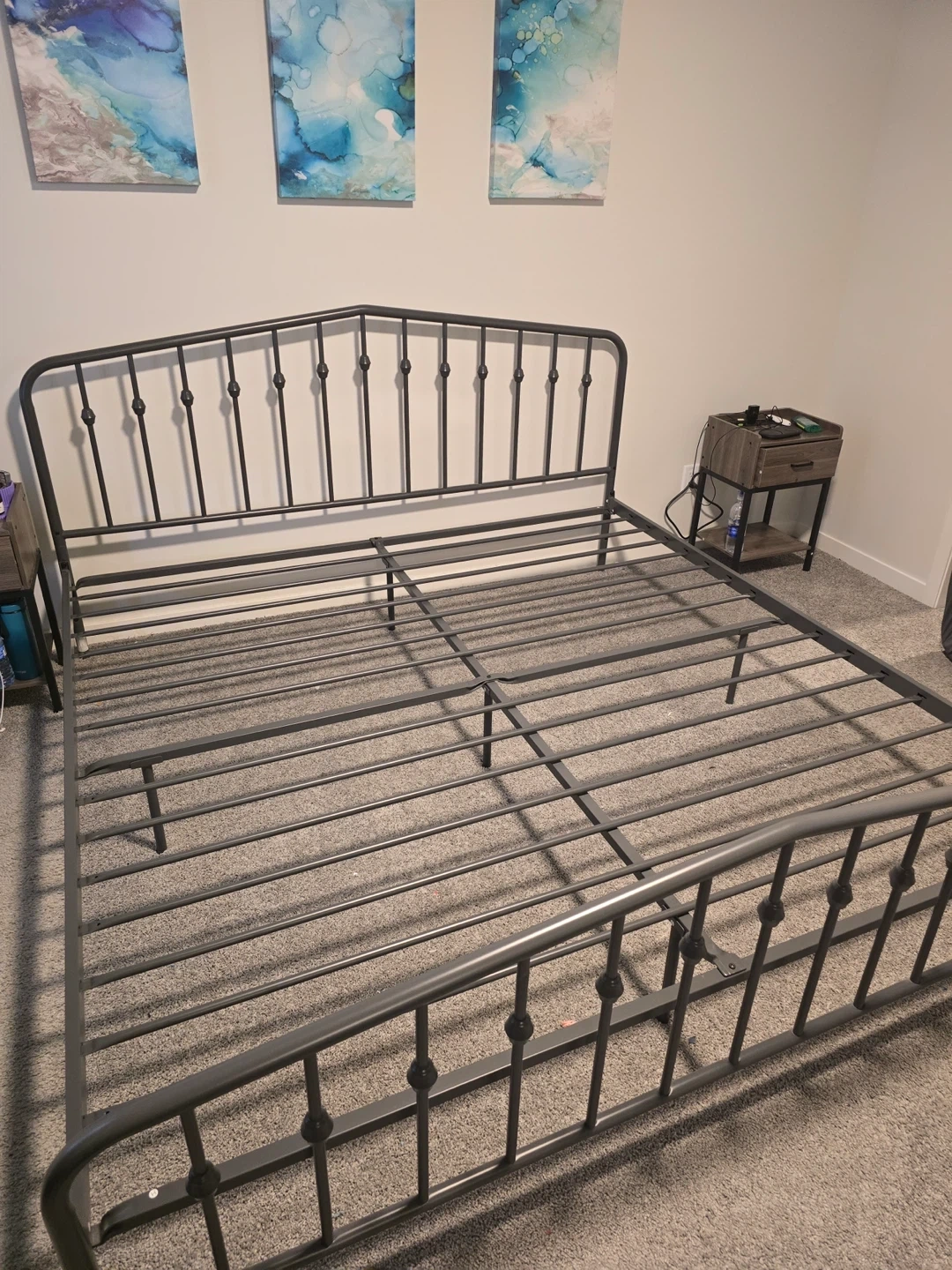 Comes with king metal frame and bedding.