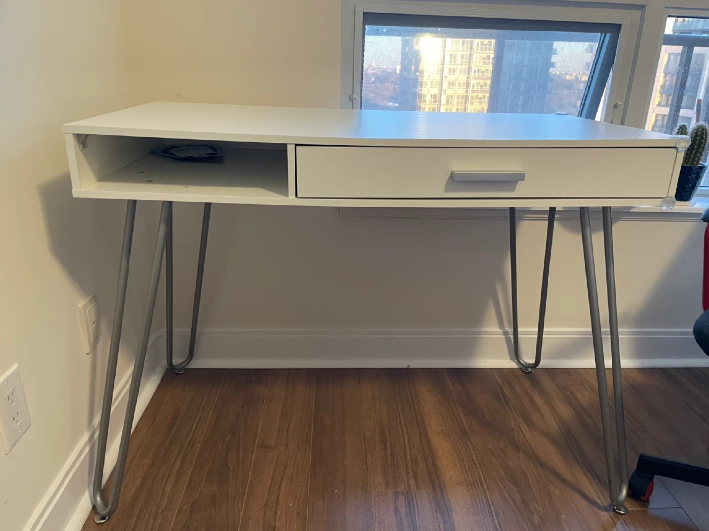 SHW Home Office Desk with Drawer, Hairpin Leg, White