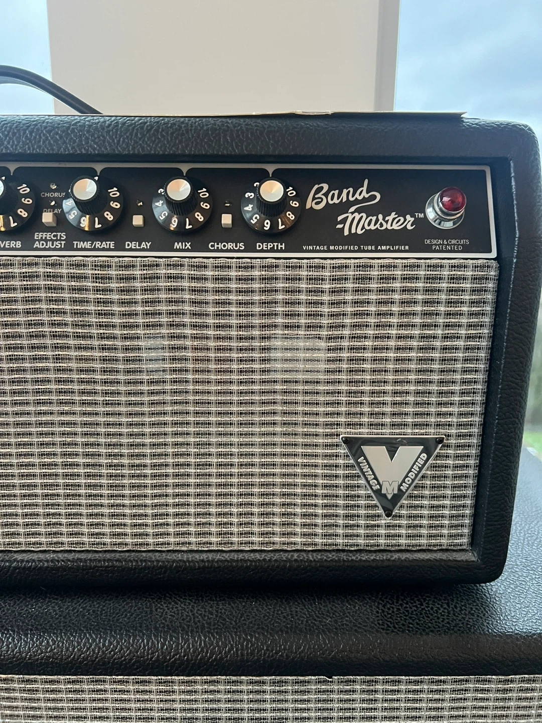 Fender Bandmaster Vintage Modified Head and 2x12 cab. Purchased new in 2011, used for a year, then stored at my home safely ever since. Comes with cables, and foot switch. Works perfectly, 9/10 condition.