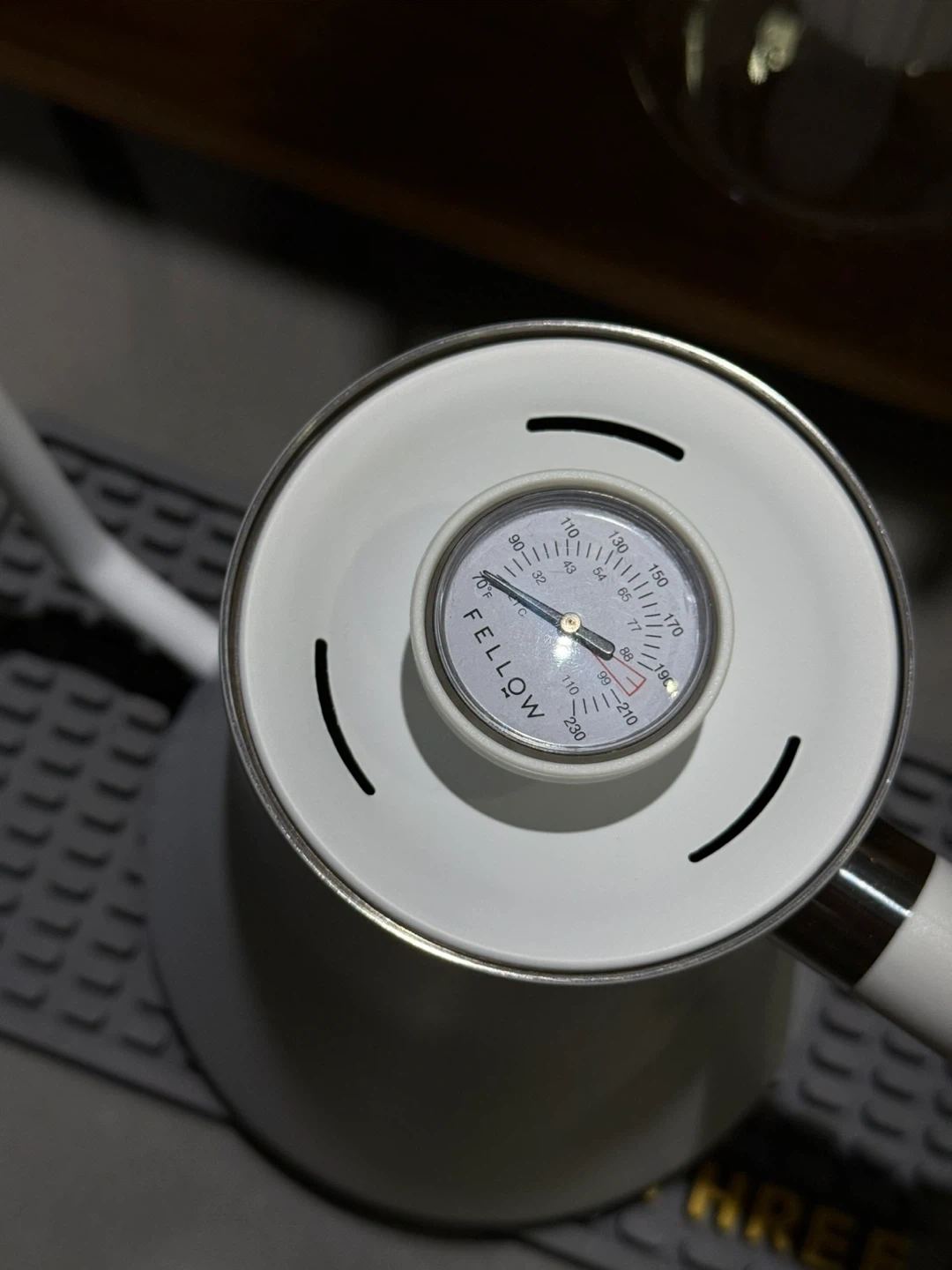 Fellow Stagg stovetop pour-over kettle for coffee and tea. It features a built-in brew-range thermometer and a counterbalanced handle for precise pouring. The gooseneck spout ensures a slow and steady flow rate for optimal extraction.