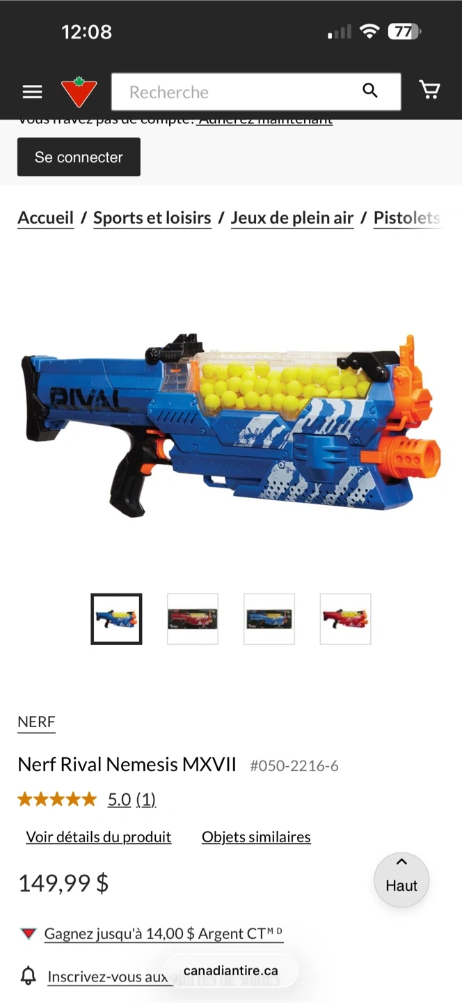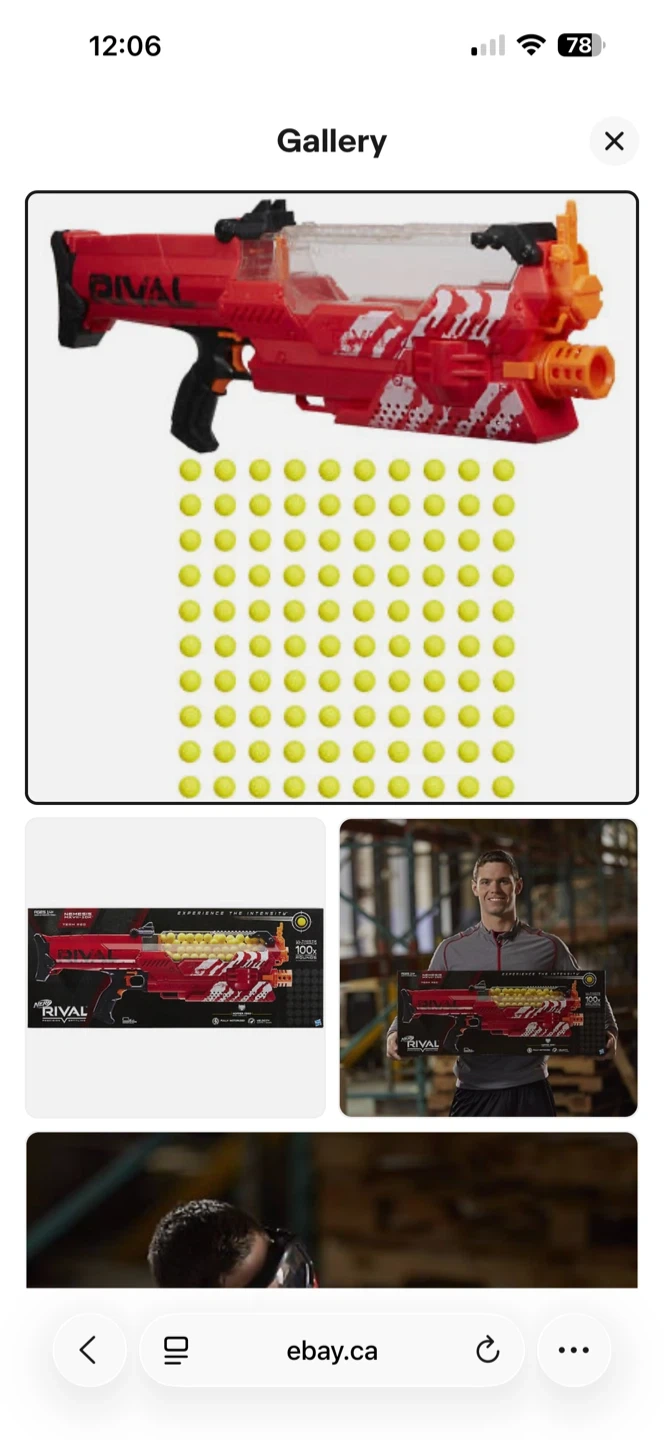 This is the Nerf Rival Nemesis MXVII-10K blaster. It's a fully motorized blaster that can shoot 100 rounds. The blaster includes the hopper and some Rival rounds.