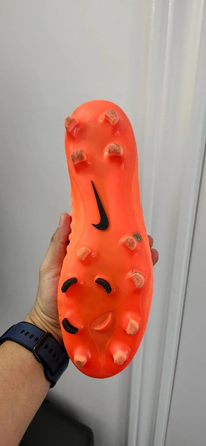 These are Nike Mercurial soccer cleats in a bright orange colour. They're designed for on-field performance. Cleats are for playing soccer!