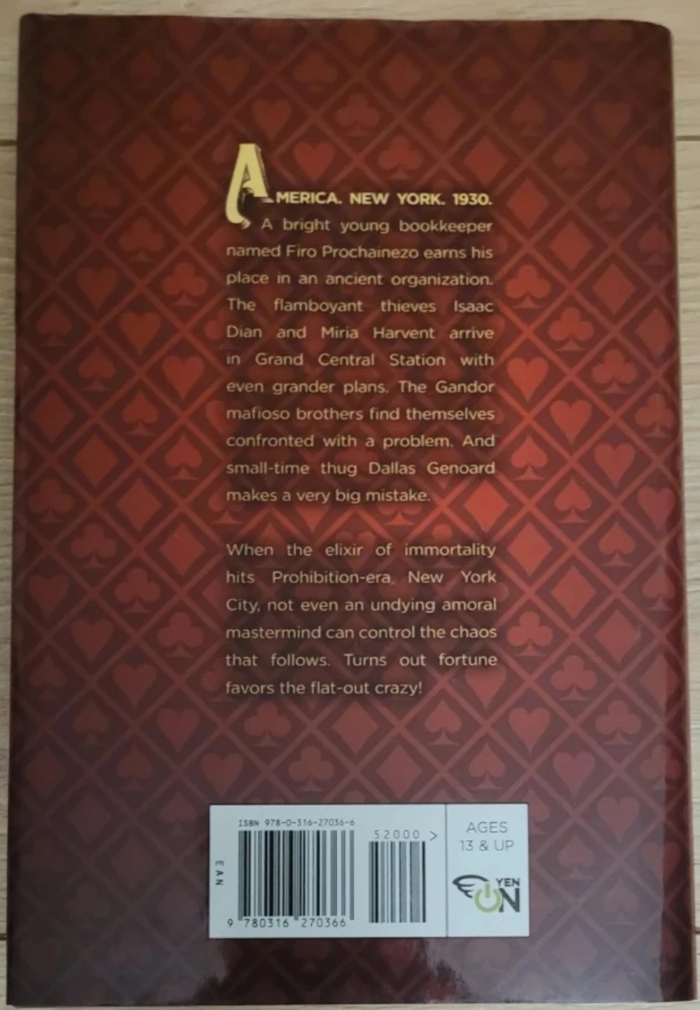 Baccano! The Rolling Bootlegs volume 1 by Ryougo Narita. The story is set in America, New York in 1930. It follows a young bookkeeper who gets involved with an ancient organization.