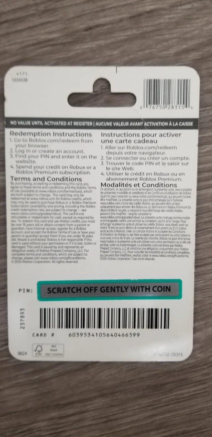 This is a $25 CAD Roblox gift card. It includes a free virtual item. Redeem your card for Robux or a Roblox Premium subscription.