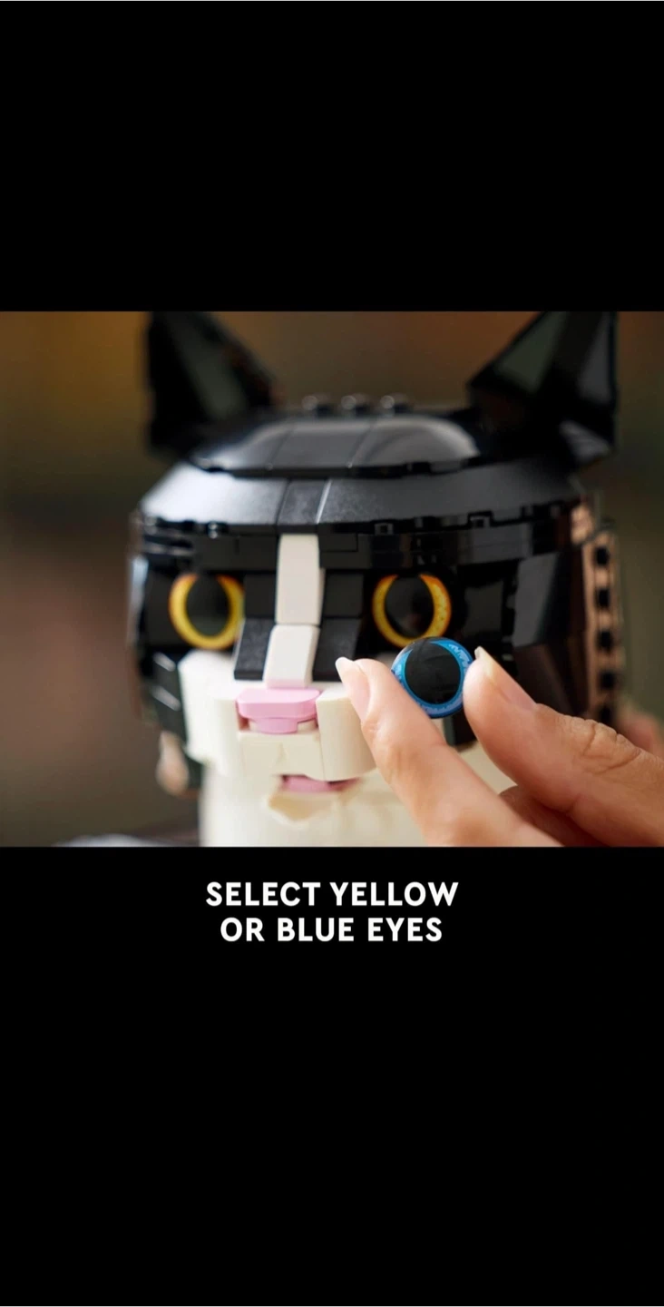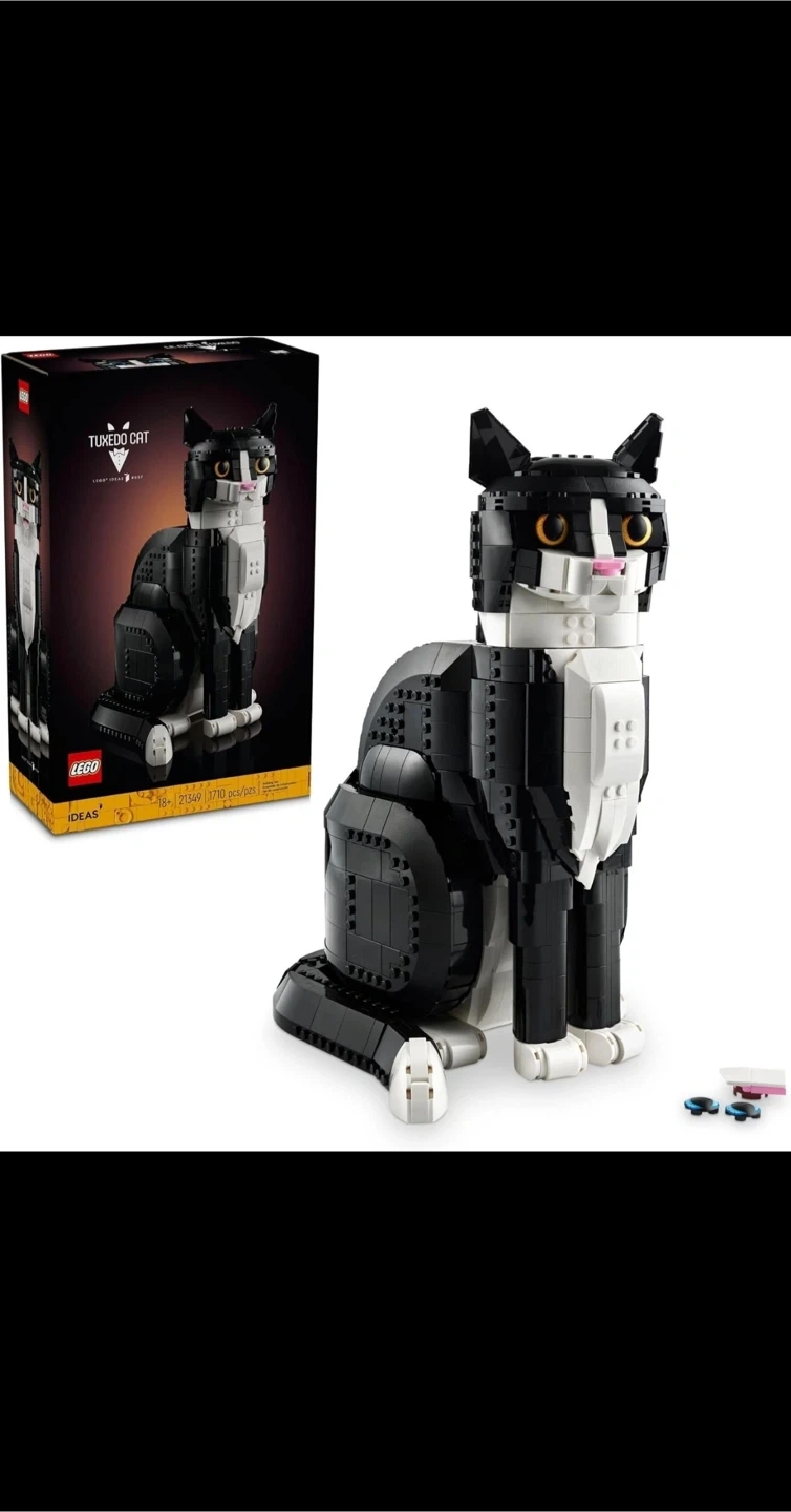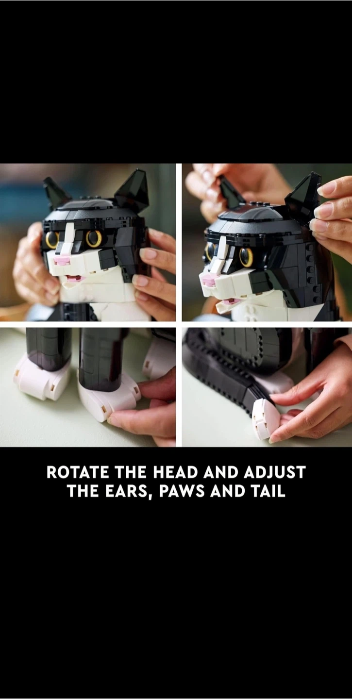 Build your own display-worthy feline with the LEGO® Ideas Tuxedo Cat (Set 21349). This detailed model features lifelike details, posable head and tail, and interchangeable eye colors for customization.