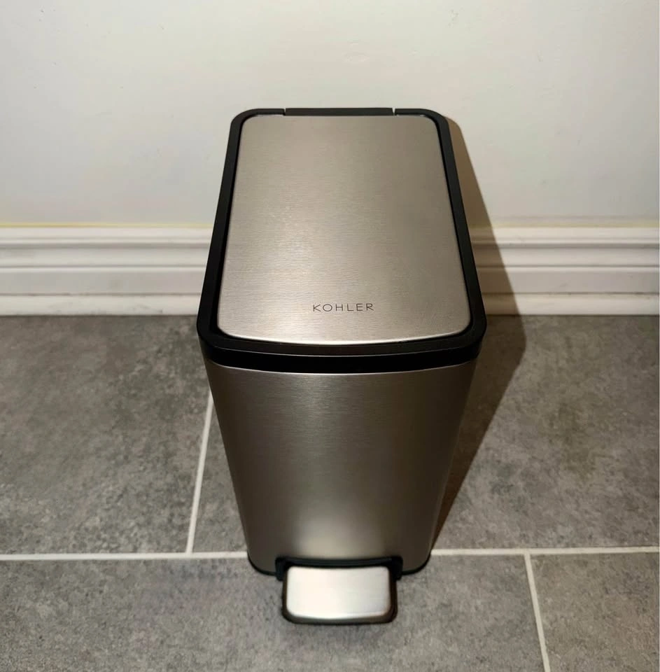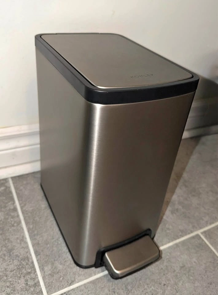 Selling a premium Kohler 6L stainless steel step trash can in excellent, like-new condition. Barely used and looks brand new, very clean with no dents or scratches. This is a high-quality, durable bin that looks great in any bathroom, office, or bedroom. Features include fingerprint-resistant stainless steel, a quiet-close lid that doesn't slam, a hygienic hands-free step pedal, and a removable inner bucket for easy emptying and cleaning. Located in Brampton (North Park Dr & Torbram Rd).