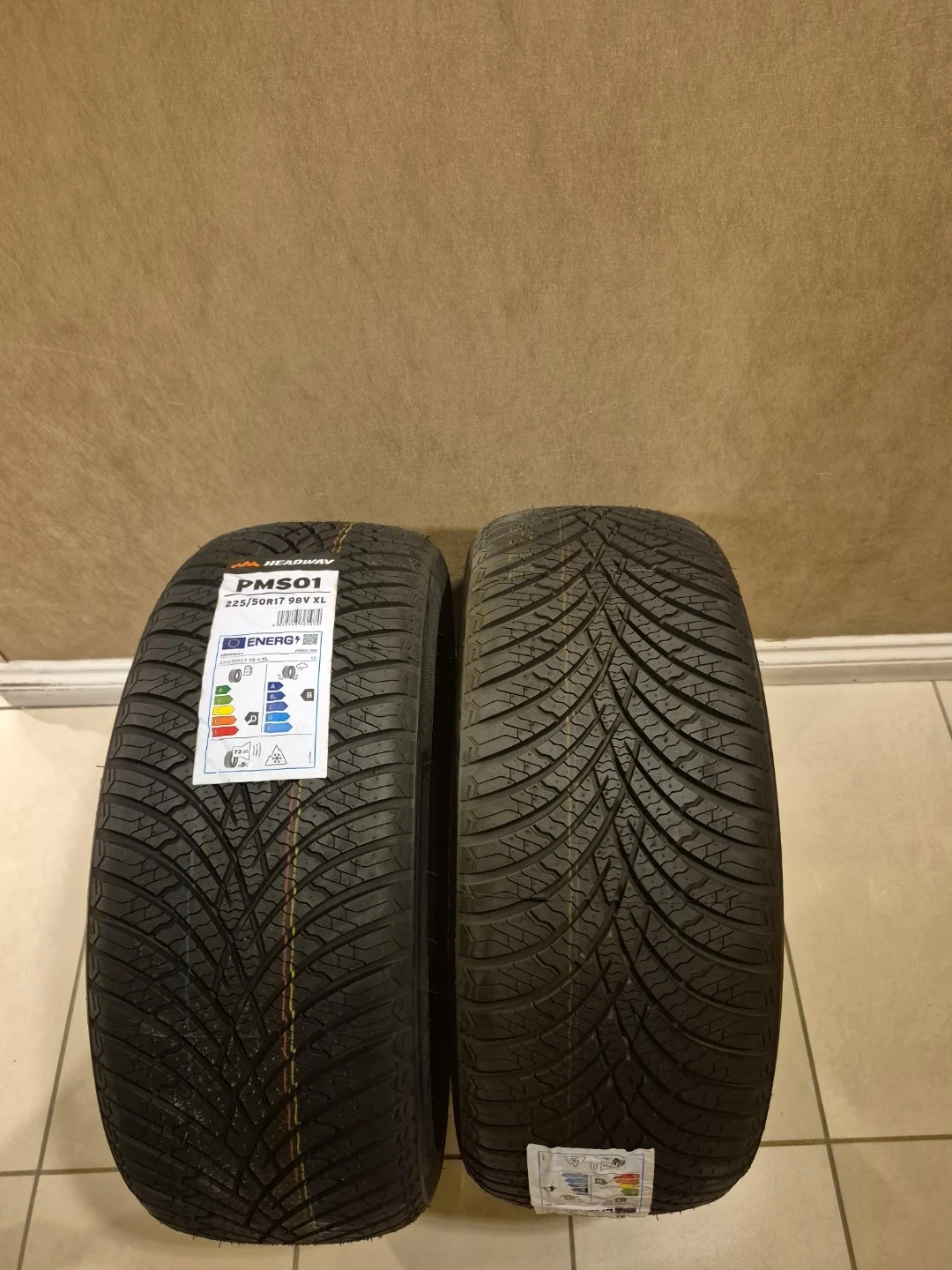 Four Headway PMS01 all weather tires. Size is 225/50R17 98V XL. These tires are great for all weather driving conditions!