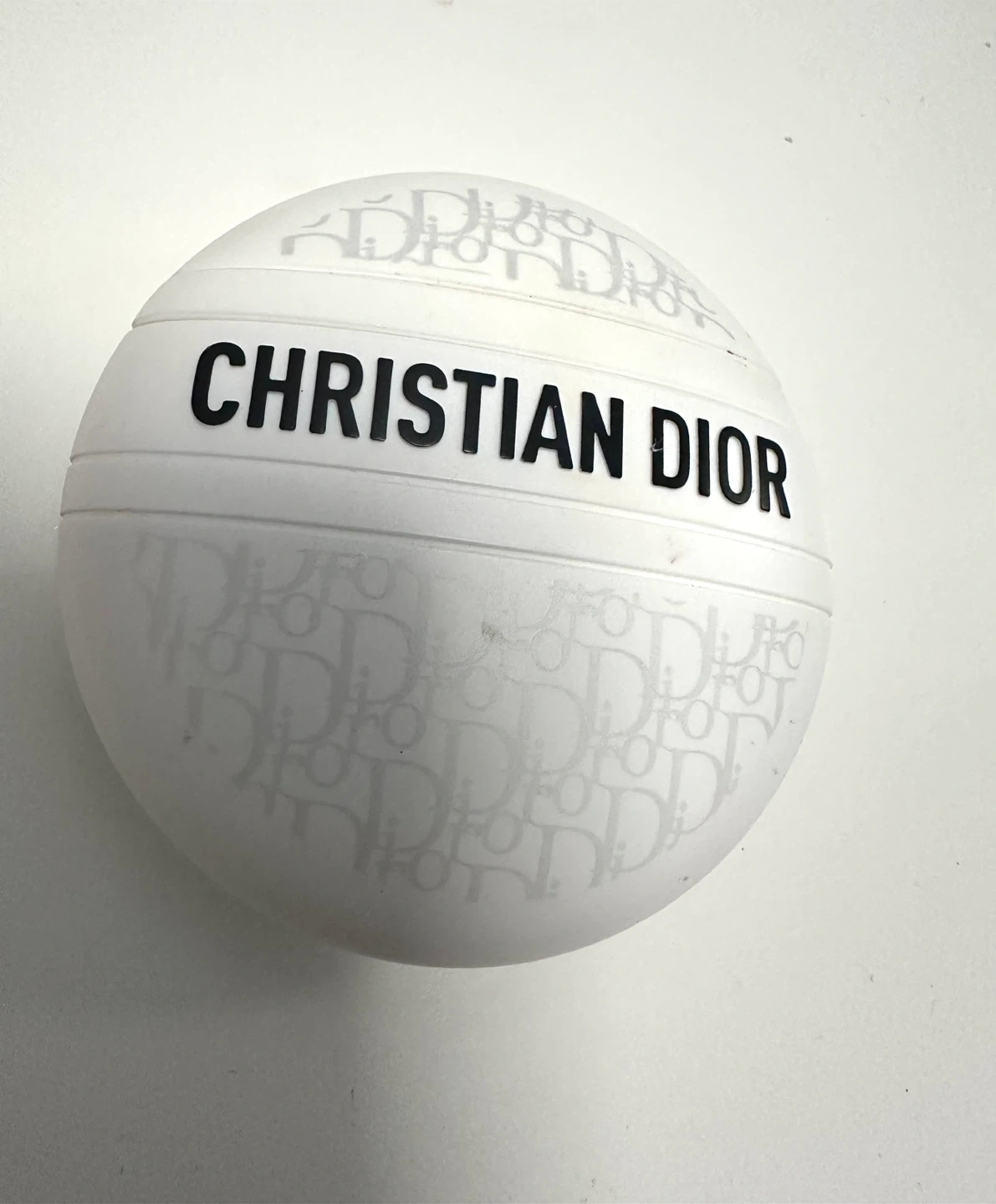 Christian Dior cosmetic case in white. It features the signature Dior monogram pattern throughout. Perfect for storing makeup or small accessories.
