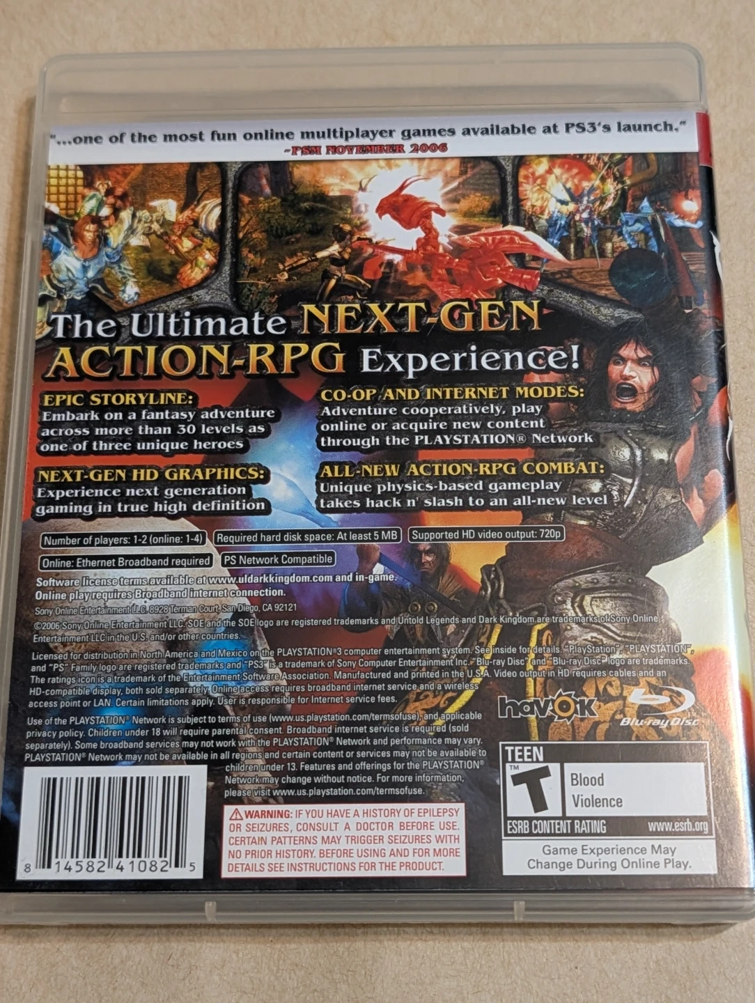 This is Untold Legends Dark Kingdom for the PlayStation 3. It's an action-RPG experience with online co-op and competitive play. Supports up to 4 players online.