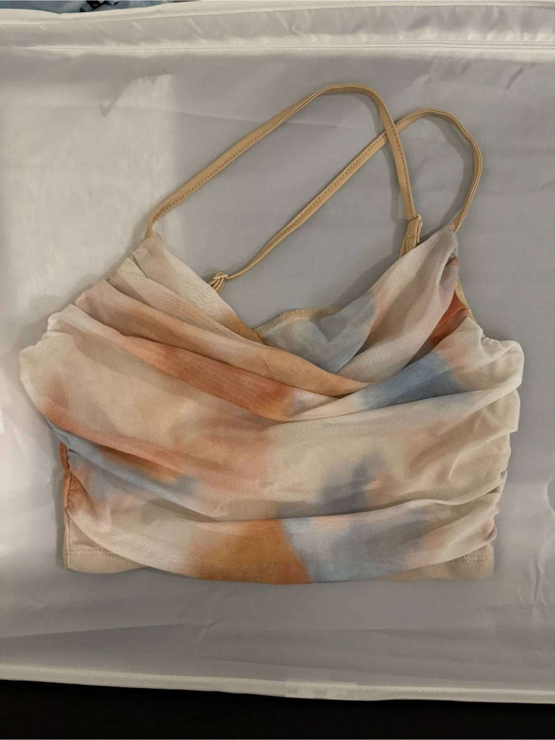 Mesh Ruched Tie-Dye Crop Top - M