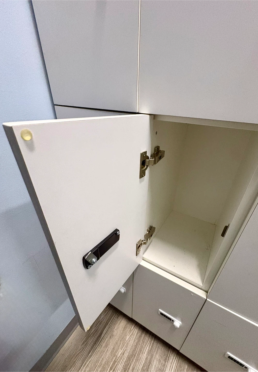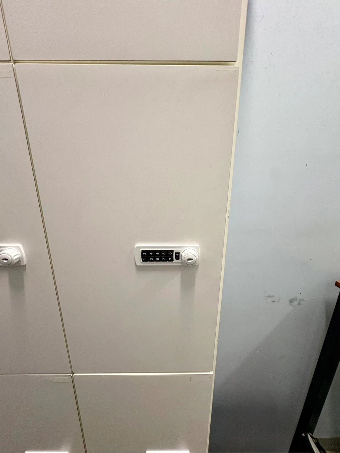 This is a set of custom made lockers. Each locker has a digital combination lock for security. They're great for storage in gyms, dance studios, schools, or offices.